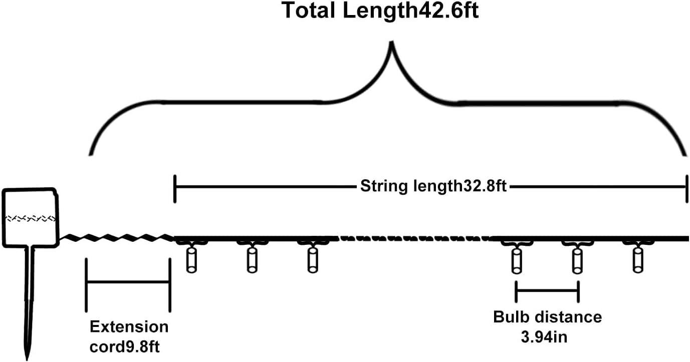 - Set of 2 Solar String Lights: Each solar powered outdoor string light has 100 light beads and is 42.6 feet long, so it is very suitable for wrapping around trees or any place you like to light up