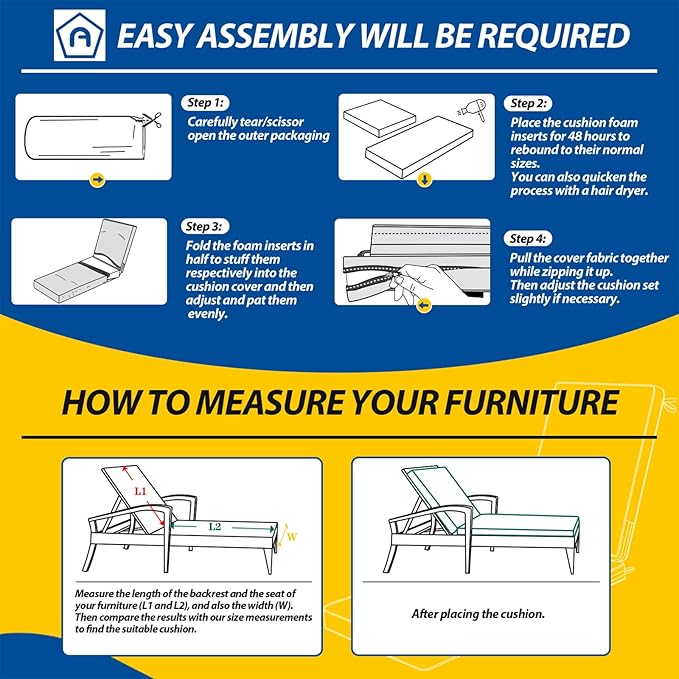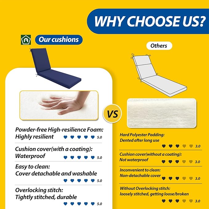 - Wide Use & Tips: These lounge chair cushions add cozy comfort to chaise lounges across pools, patios, balconies, decks, backyards, and gazebos, making your outdoor space more inviting and relaxing