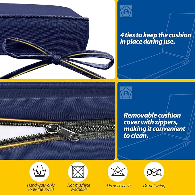 - Non-slip Ties & Piped Edge: Keep your outdoor cushion securely in place with easy-to-use ties. Reinforced piped edges add durability and a stylish finish, so your seating stays comfortable, neat, and inviting
