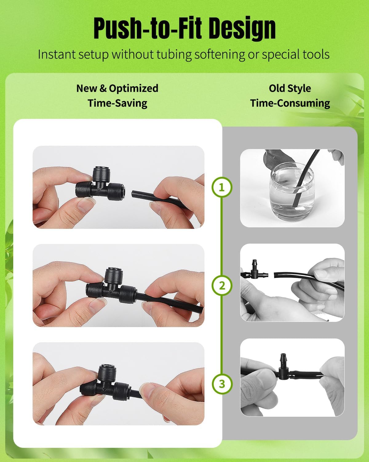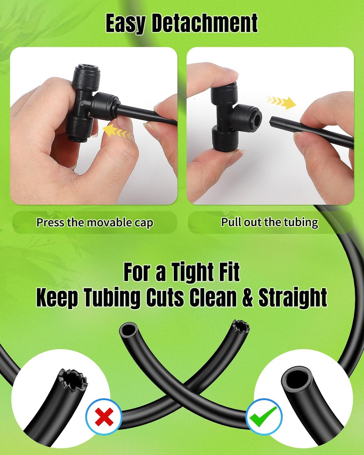 - For All 1/4" Tubing: Universally compatible with all standard 1/4-inch drip irrigation tubing, the quick-connect tee fittings perform best with rigid polyethylene (PE) hoses! A perfect solution for customizing or expanding your garden watering network
