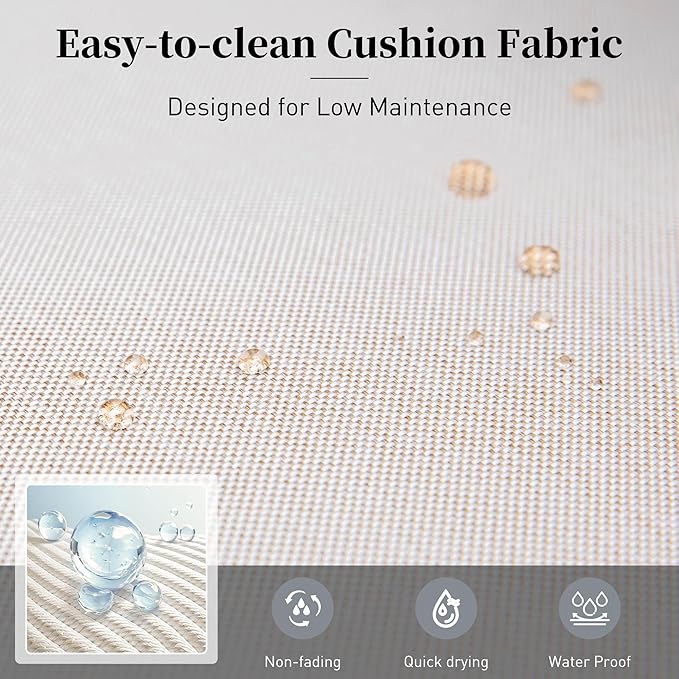 - ALL-WEATHER UES: This outdoor bar set is made of HDPE frame and WICKER KING backrest. It provides long-term outdoor protection against rust, scratches and rain. The cushion covers are made of quick drying fabric, which is waterproof, oil resistant and easy to maintain. The L-shaped zipper design make it easily removable for cleaning