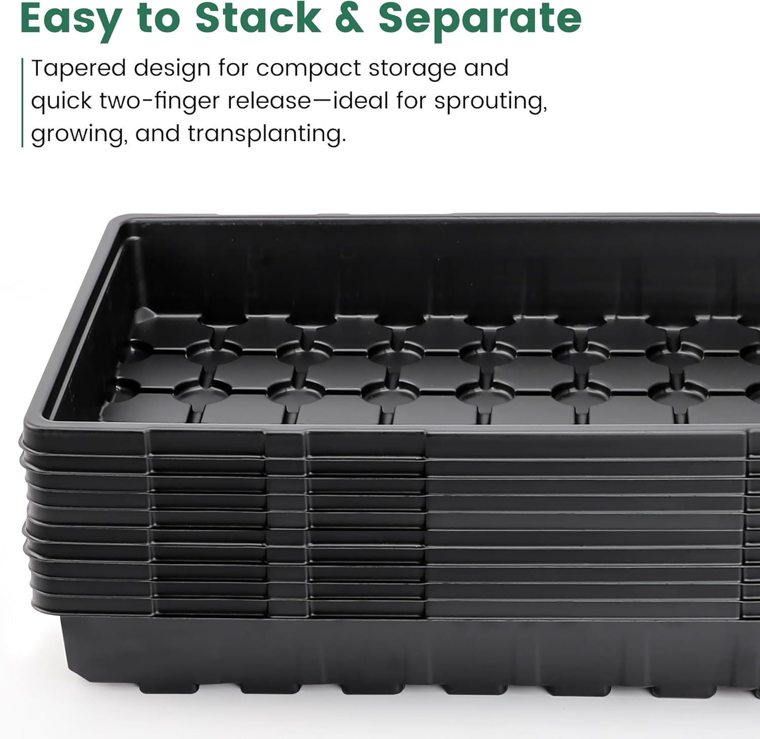 - 【Heavy-Duty Construction – Built to Outlast】1.2mm reinforced PP plastic withstands 3x more weight than flimsy trays. Engineered to stay rigid even when loaded with damp soil—no warping, cracking, or bending. Reuse them season after season, making these trays a smart investment for serious gardeners.