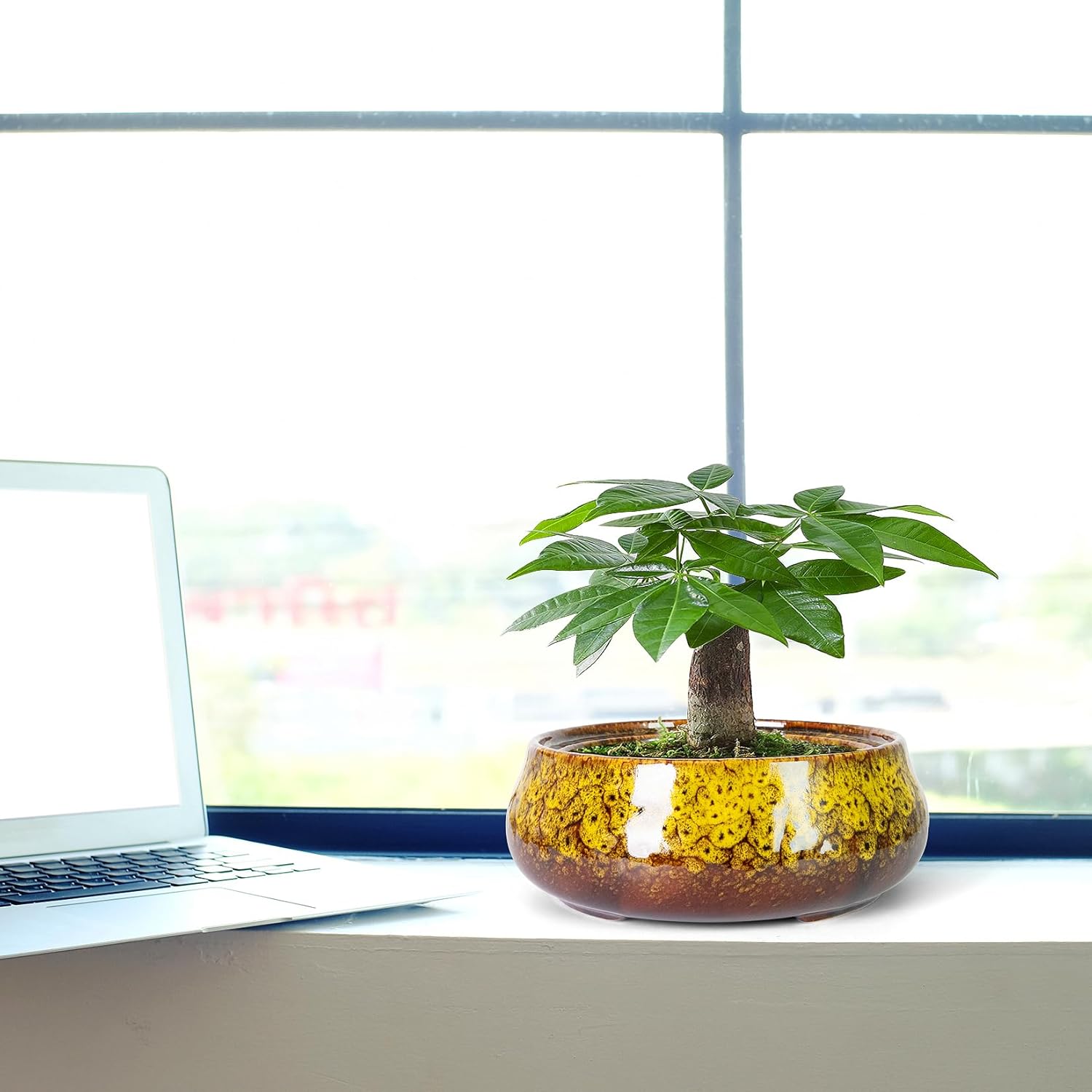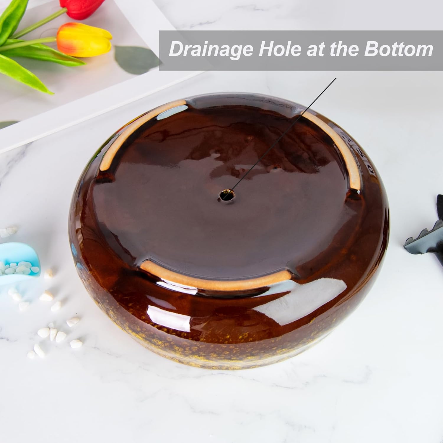 ARTKETTY Succulent Pots - 8 Inch Plant Pot, Large Bonsai Pots with Drainage, Ceramic Planters for Indoor Outdoor Plants, Round Shallow Cactus Flower Plant Container Bowl Decorative Home Garden