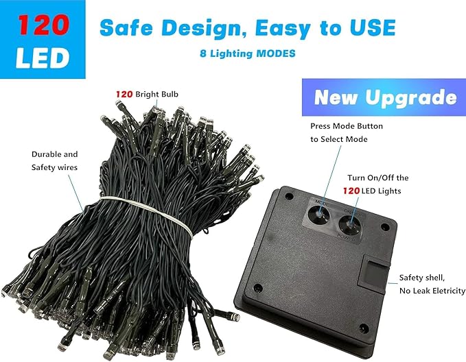 - Bigger Solar Panel/Batterys & Longer Working Time: This solar string lights outdoor with auto sensor control, Auto on at dark and Auto off at daytime; Our solar lights outdoor waterproof updated the battery to 1800 mAh with superior quality and Bigger solar panel No extra electric cost, solar powered only; Our solar christmas lights outdoor can work for 10-12 hours (6-8 hours) after fully charged, long-lasting lighting up your home