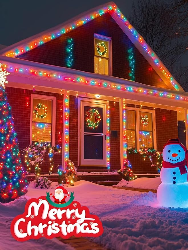- Upgraded Multicolored Solar String Lights on Green Wire: The solar Christmas lights are upgraded in 2025 with brighter LED and higher charging efficiency solar panel. Each string is 100 LEDs with a length of 39ft (33FT plus 6FT leading wire. Total 6pcs per set (198 FT and 600 LEDs)