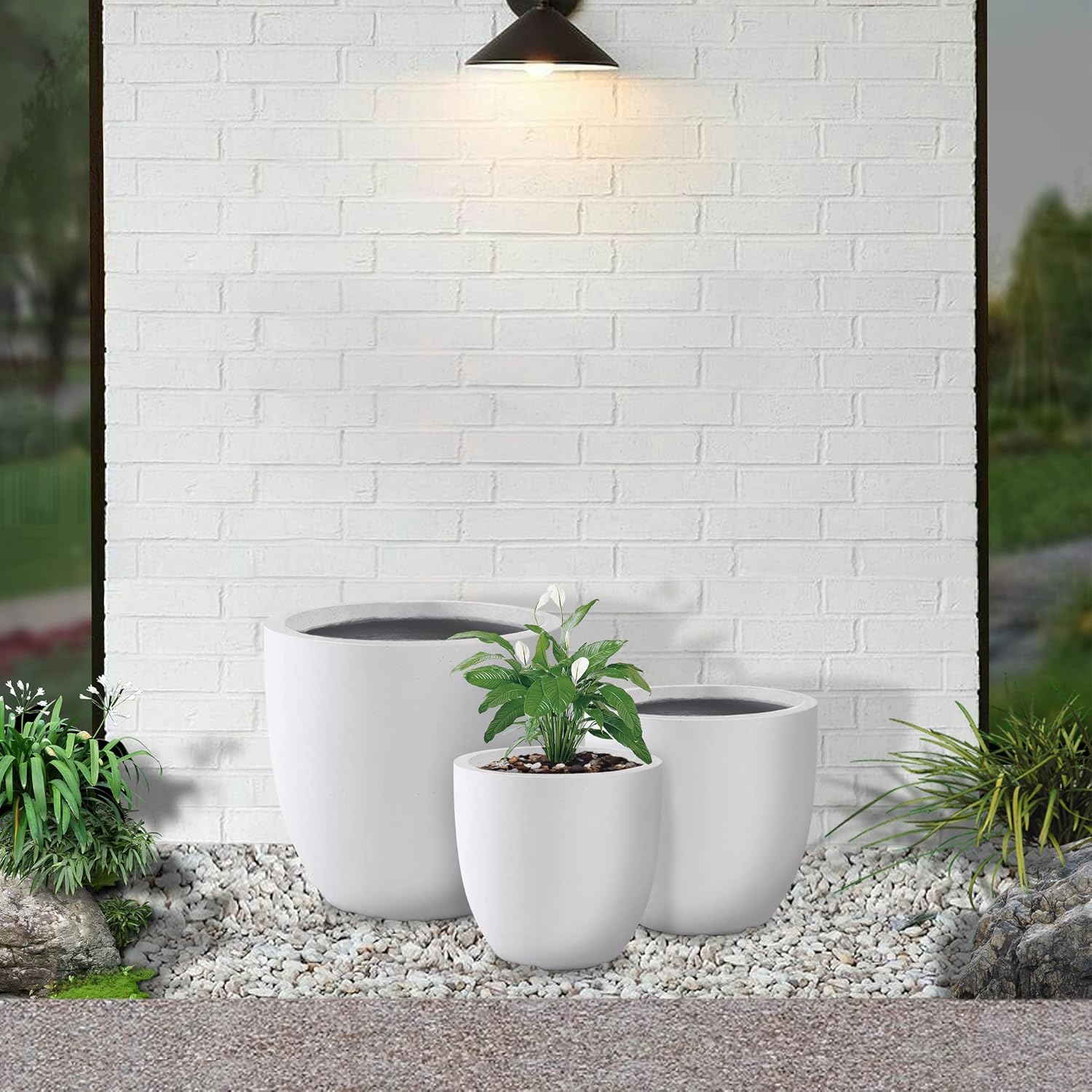 Kante 18",14",10" Dia Concrete Round Planters (Set of 3), Outdoor Indoor Large Planter Pots with Drainage Hole for Home Patio Garden, Pure White