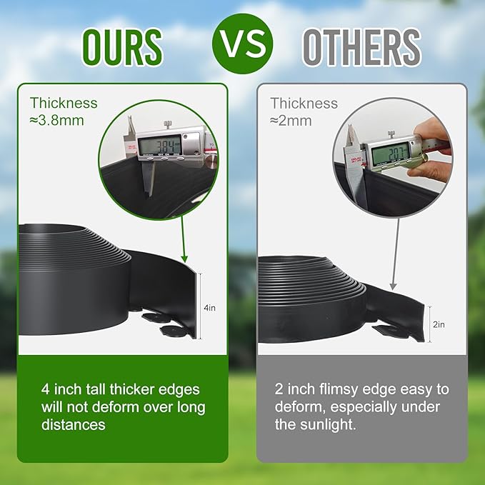- Flexible And Durable Our landscaping edging border made of high density PE material, easy to bend to any shape. You can shape the edging to any shape as product need. Thickened edging even in long straight lines will not easy deform