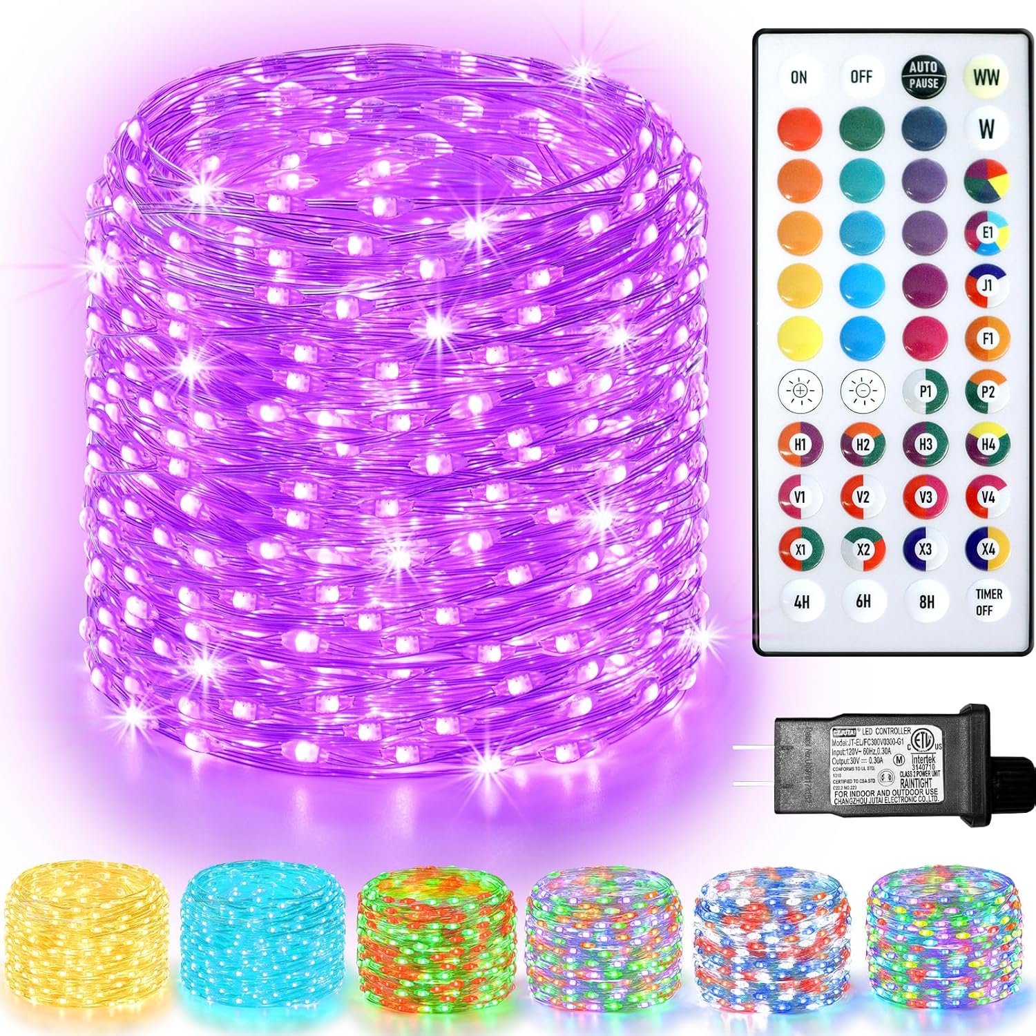 - 35 Colors Changing Fairy Lights: 66ft 200 LED RGB string lights silver wire with 17 base colors + 18 holiday themes colors ( “W” button for cool white color / “WW” button for warm white color ), dynamic effects, timer settings and remote control. Ideal for festive decor and ambient lighting