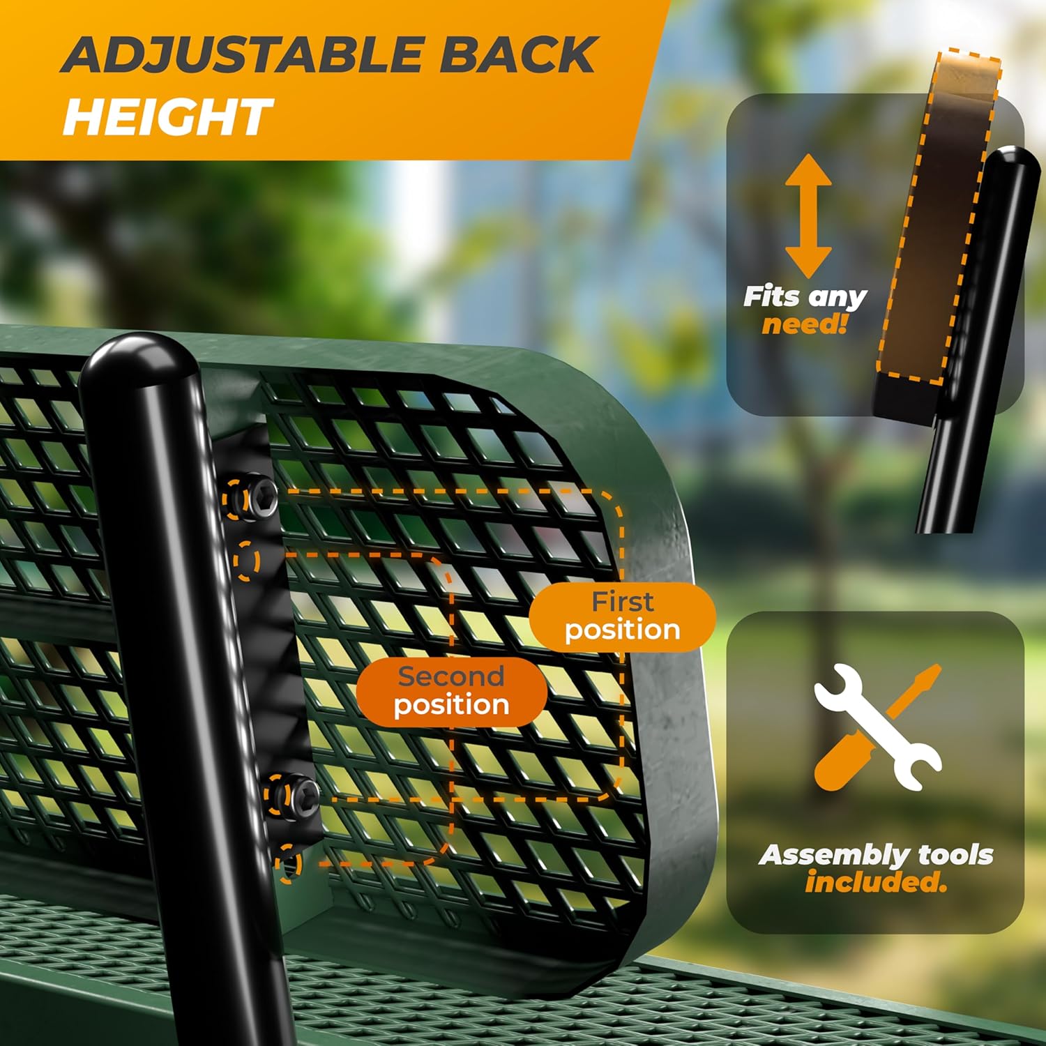 - Weather-Resistant & Easy to Maintain: Commercial-grade steel with thermoplastic coating, black powder finish, diagonal reinforcement bars, and industrial legs resists rust, corrosion, and UV damage year-round.