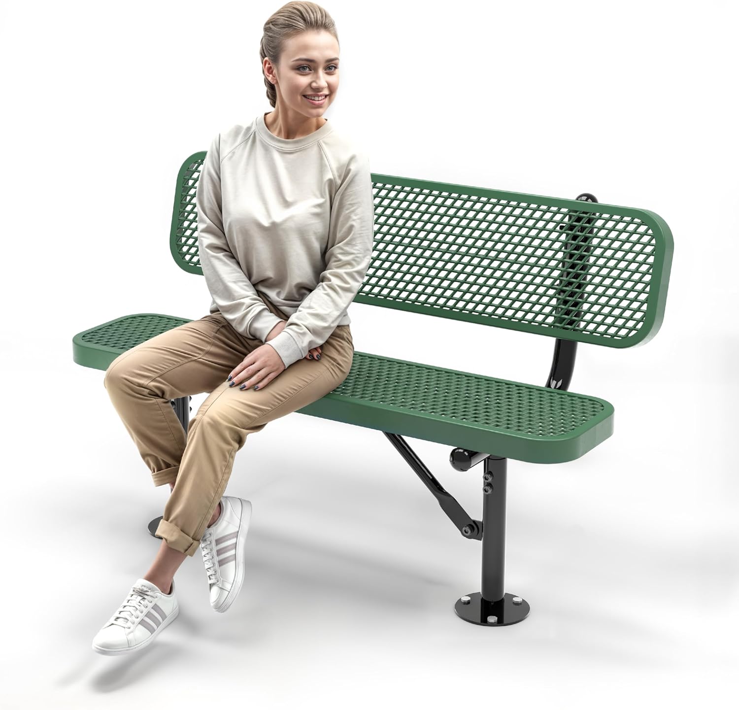 Heavy-Duty Outdoor Metal Bench, Thermoplastic-Coated, Surface, Weatherproof, Commercial-Grade for Parks, Gardens, Patios, Stores & More (4 Ft - Surface with Back, Green)