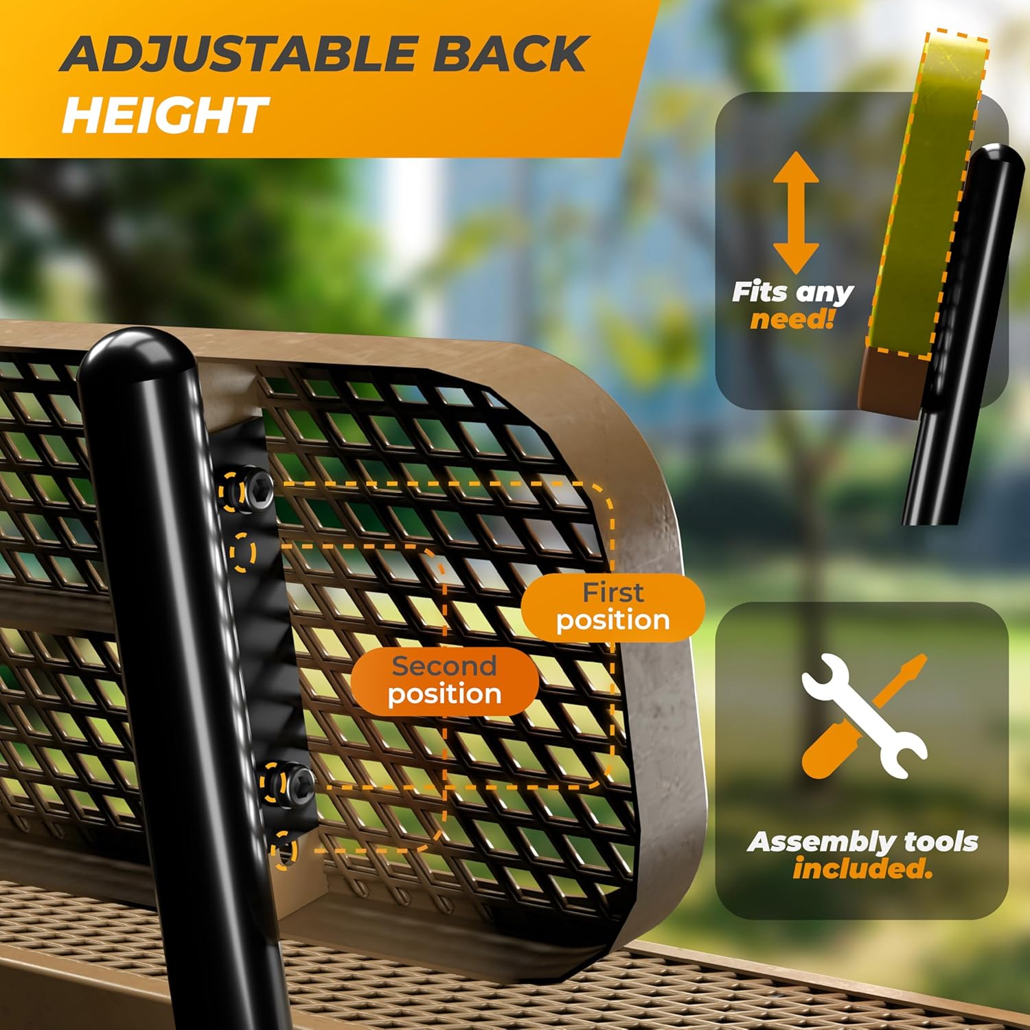 - Weather-Resistant & Easy to Maintain: Commercial-grade steel with thermoplastic coating, black powder finish, diagonal reinforcement bars, and industrial legs resists rust, corrosion, and UV damage year-round.