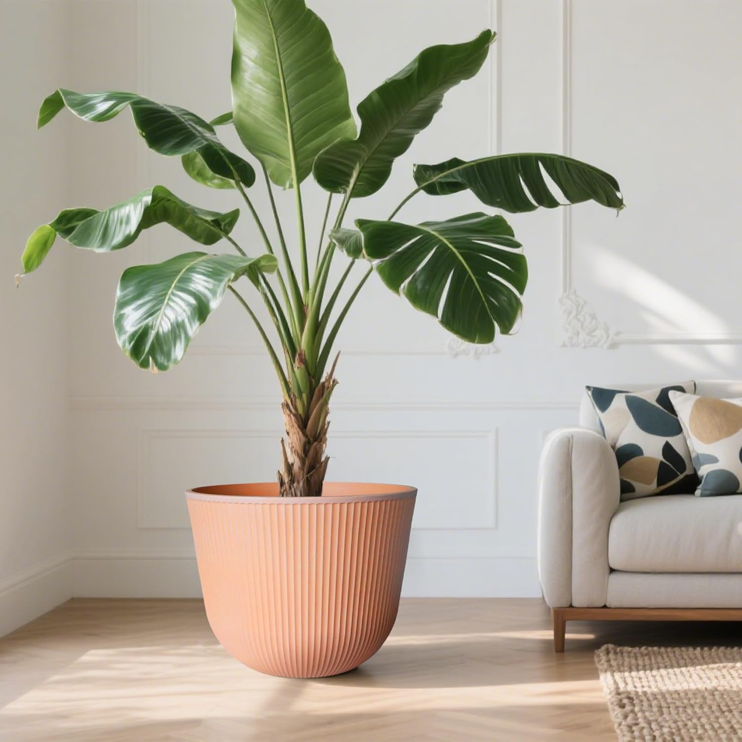 WORTH Garden Round Large Planter Pot 1-Pack, 17.5" Dia x 15.5" H - Durable Plastic Terracotta Plant Tree Pots with Vertical Stripe Textured Finish, Drainage Hole for Indoor Outdoor Front Porch Patio