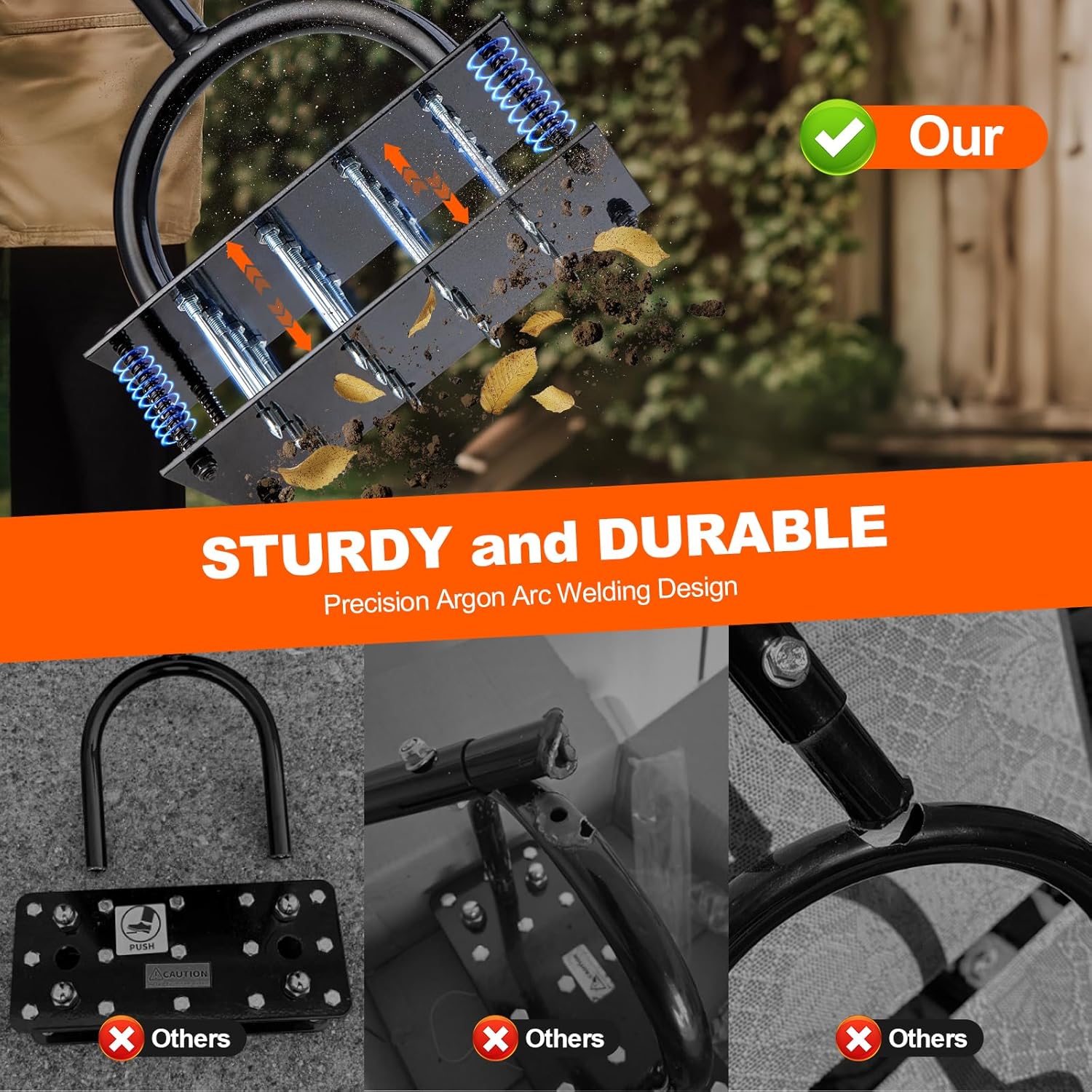 - 【Industrial-Strength Lawn Aerator】Engineered with 2mm reinforced steel plates joined by precision argon arc welding, the Bluesea aerator delivers military-grade structural integrity. Our advanced welding technology creates molecular-level bonds that are 40% stronger than conventional methods, while the electrostatically-applied anti-corrosion coating ensures decades of rust-free performance.
