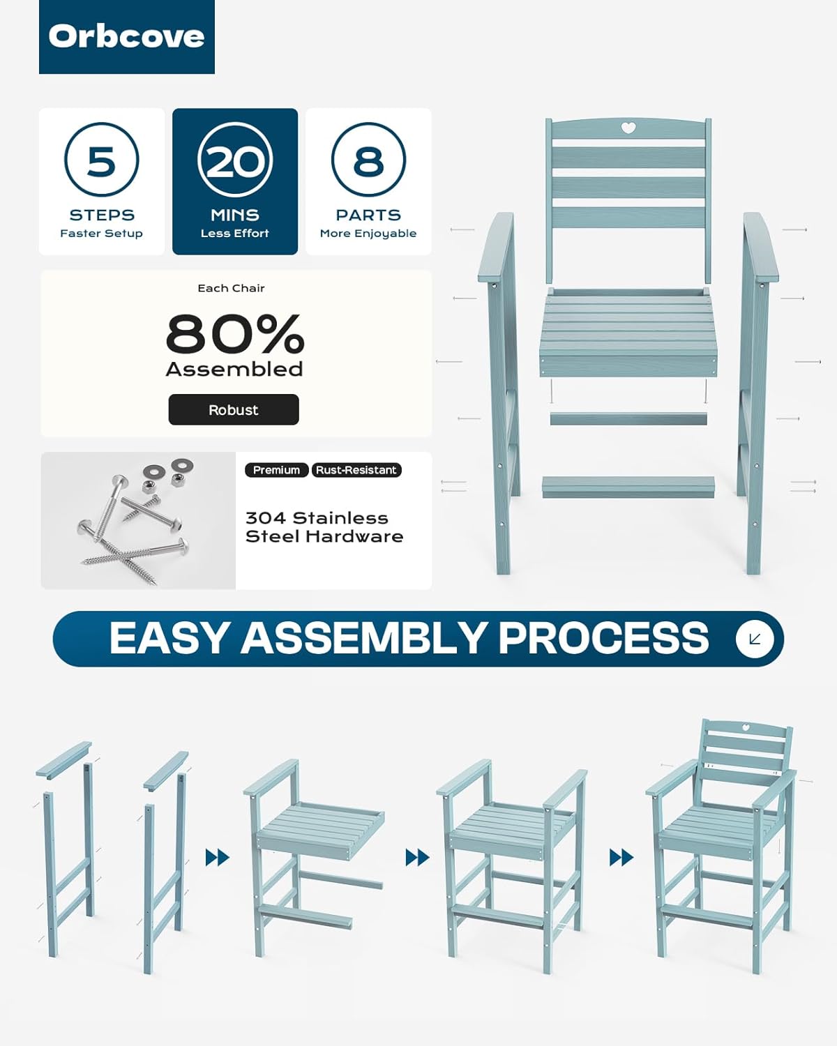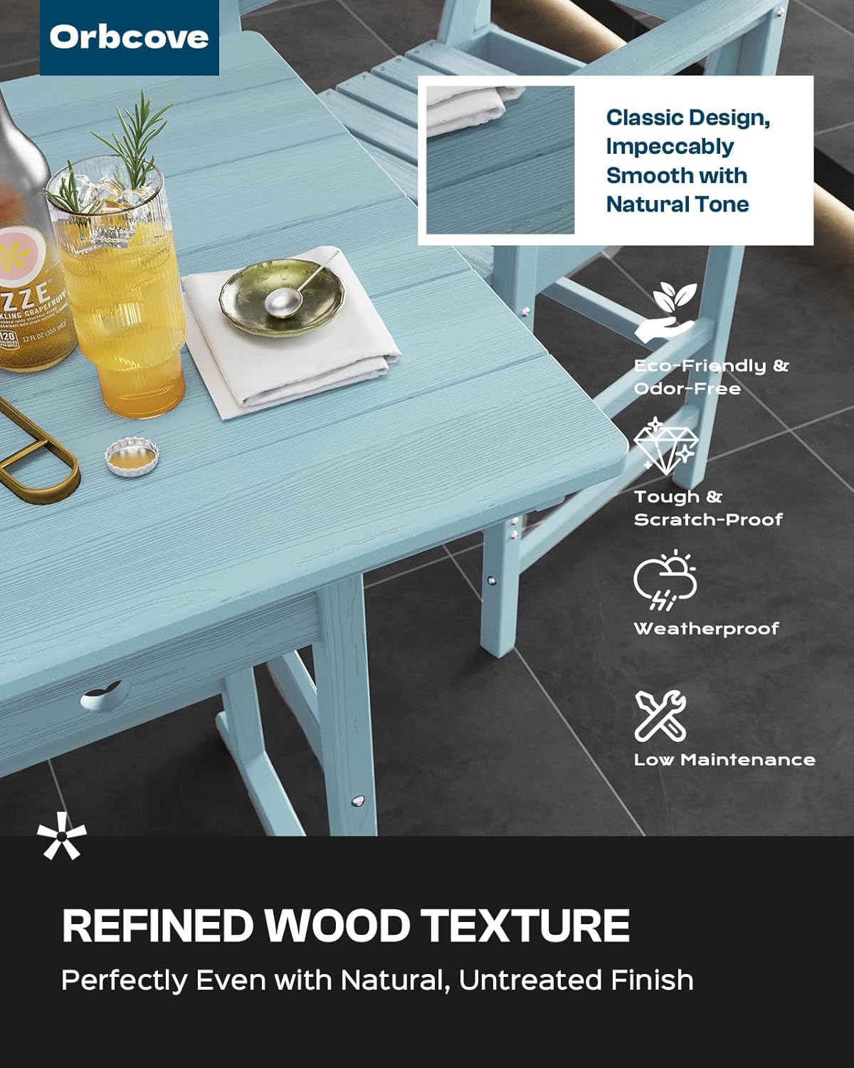- Durable All-Weather Design: (Please note!!!Your order consists of two or three separate packages, which may be delivered at different times.) Crafted from HDPE with a natural wood grain finish, Orbcove bar table and chairs set withstands sun, rain, and wind without fading or cracking. Ideal for deck furniture, backyard furniture, or porch furniture, it’s perfect for year-round outdoor living.