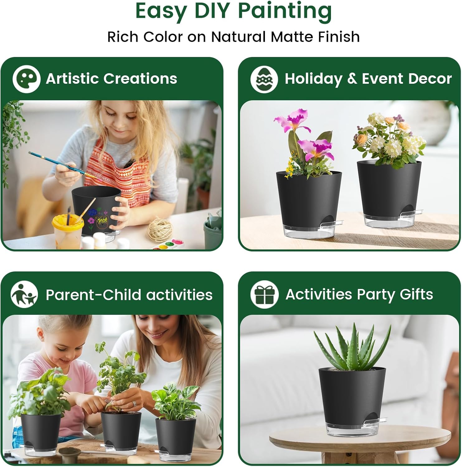 - 【Multi-Purpose and DIY Friendly】These self watering planters for indoor plants are perfect for growing cacti, succulents, aloe vera, african violets, herbs, and snake plants. Spark creativity! Color or DIY these self-watering planters- a fun project to grow plants & memories with kids.