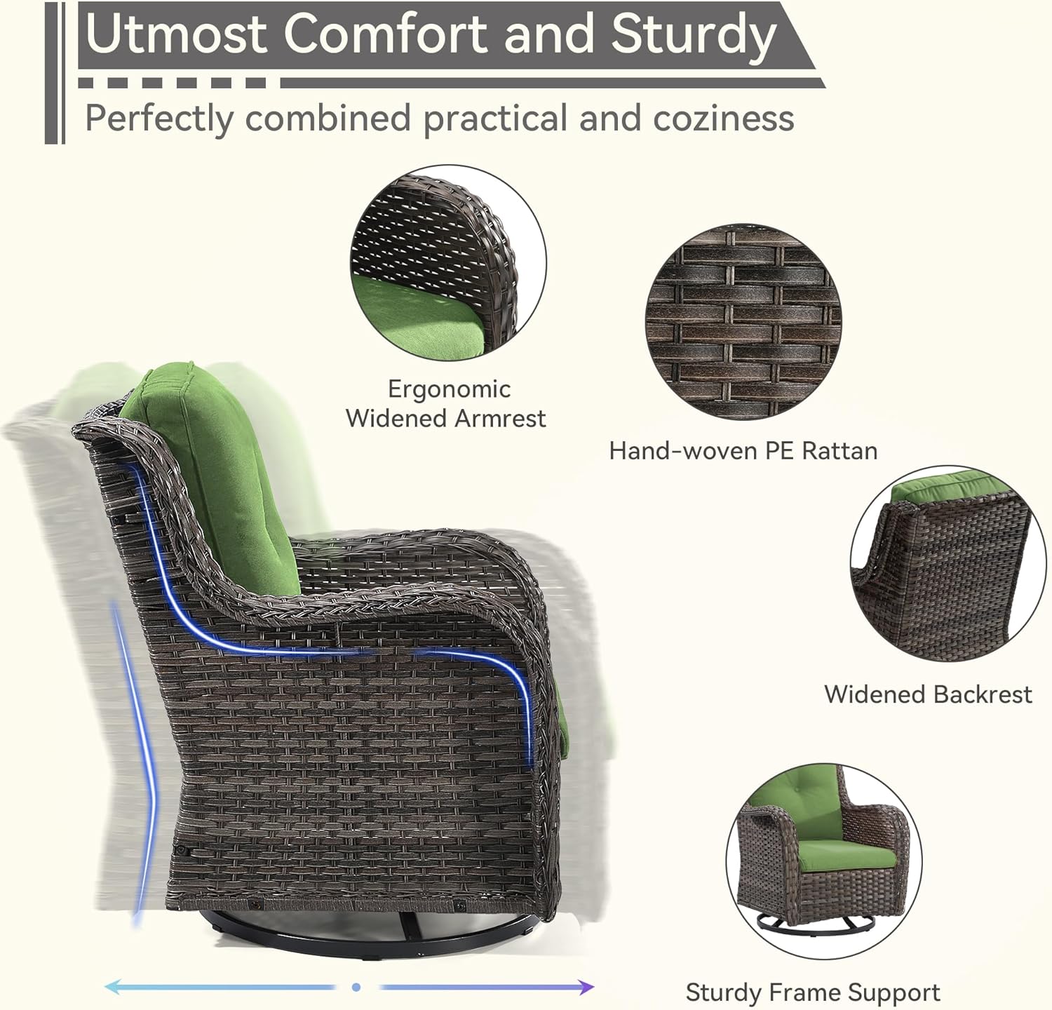 Outdoor Swivel Rocker Patio Chair - Outdoor Wicker Patio Glider Chair with Olefin Fabric Cushions Suitable for Backyard Deck and Porch, Green