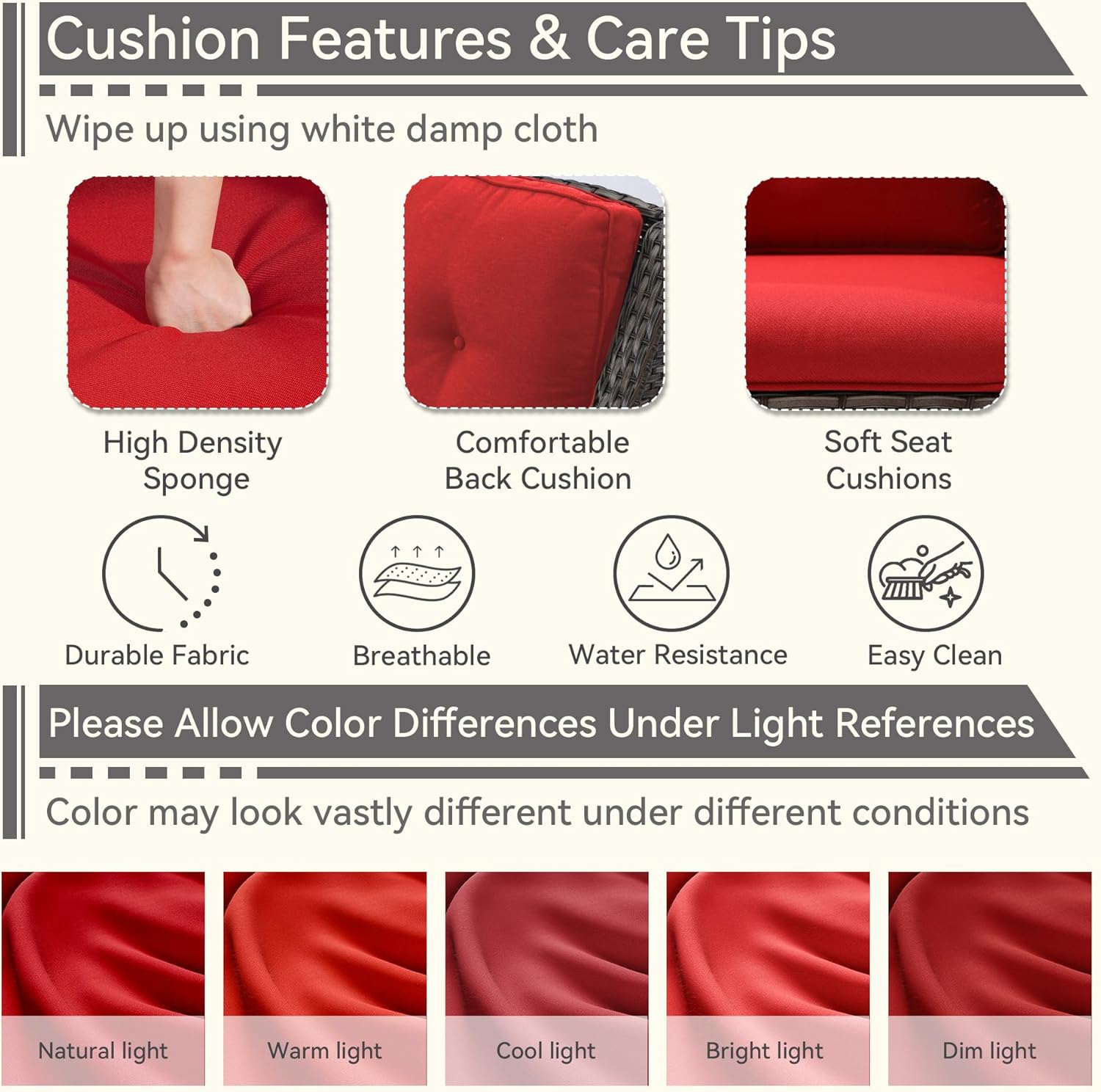 2 Pieces Outdoor Swivel Rocker Patio Chairs Set - Outdoor Wicker Patio Conversation Sets with 1 Side Table, Olefin Fabric Cushions Suitable for Backyard Deck and Porch,Red