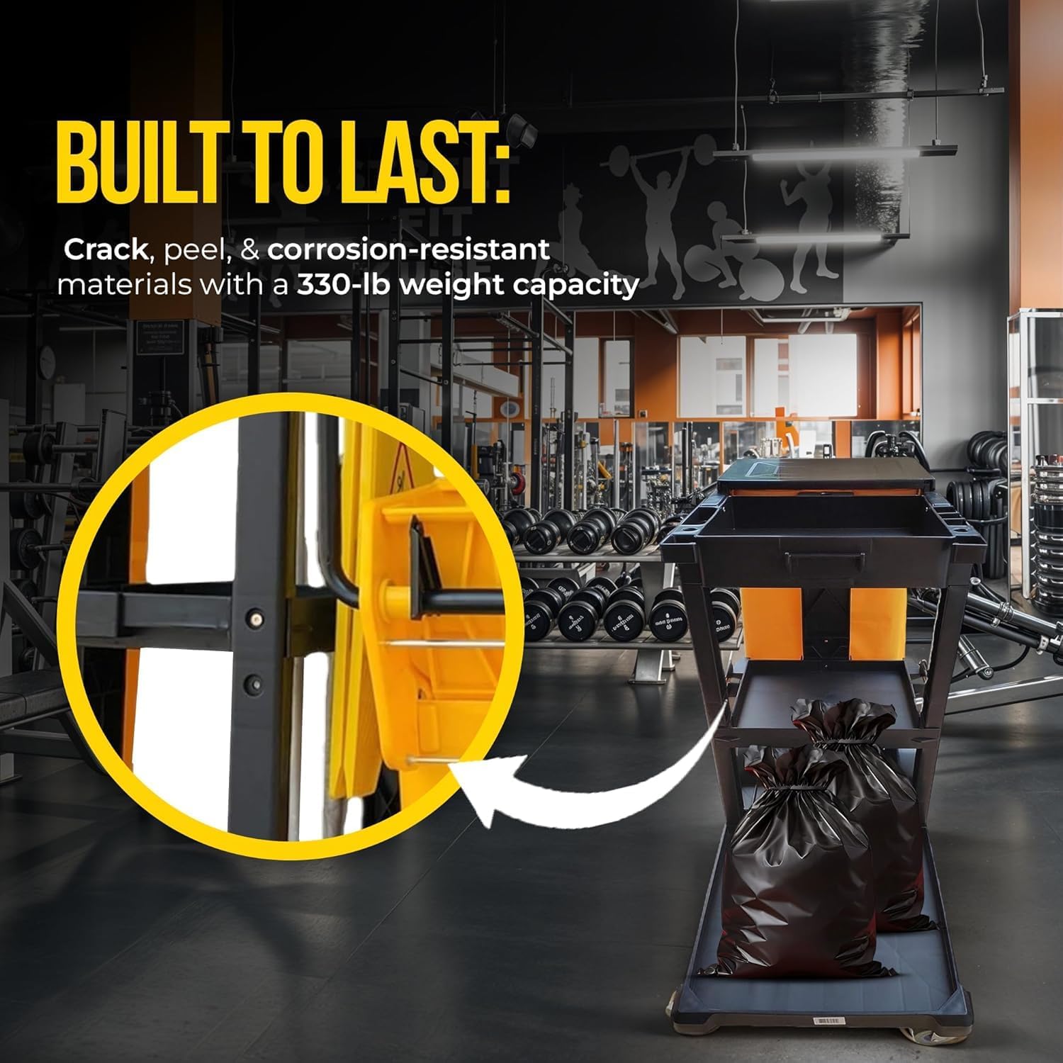 - Equipped with a 25-Gallon - 66 lbs. Capacity Waste Collection Bag and Garbage Lid that Prevents Odors Escaping