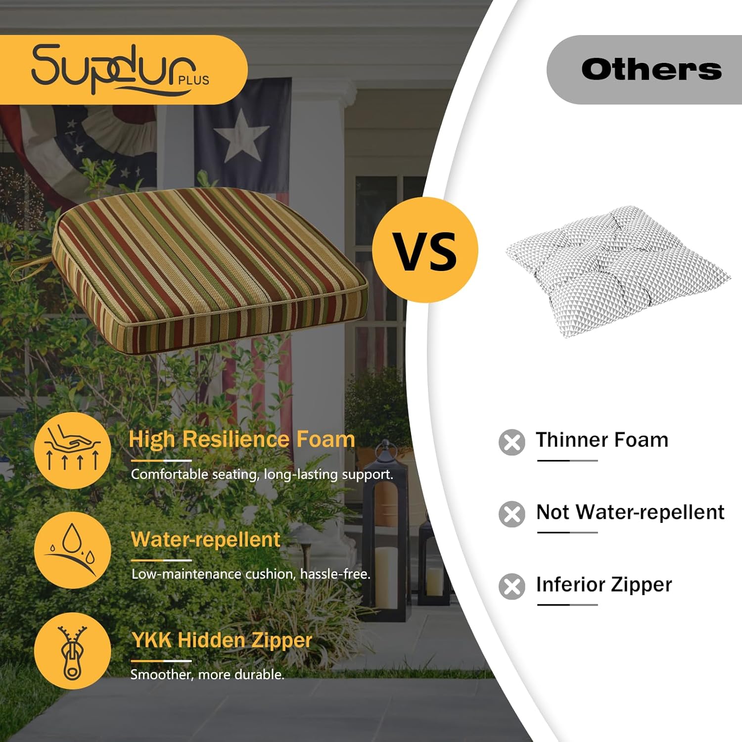 - High-density Foam: Made with thick, high-resilience foam that bounces back quickly after use, providing soft support and lasting comfort.Perfect for long hours of sitting while enjoying the outdoors.