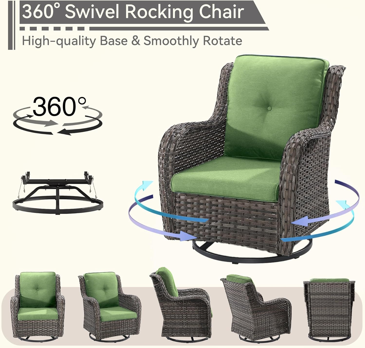- [360° Swivel Gliding Chair] Gently glide back or forth while sitting, rotate 360° smoothly bi-directionally. Well combined practical and fun