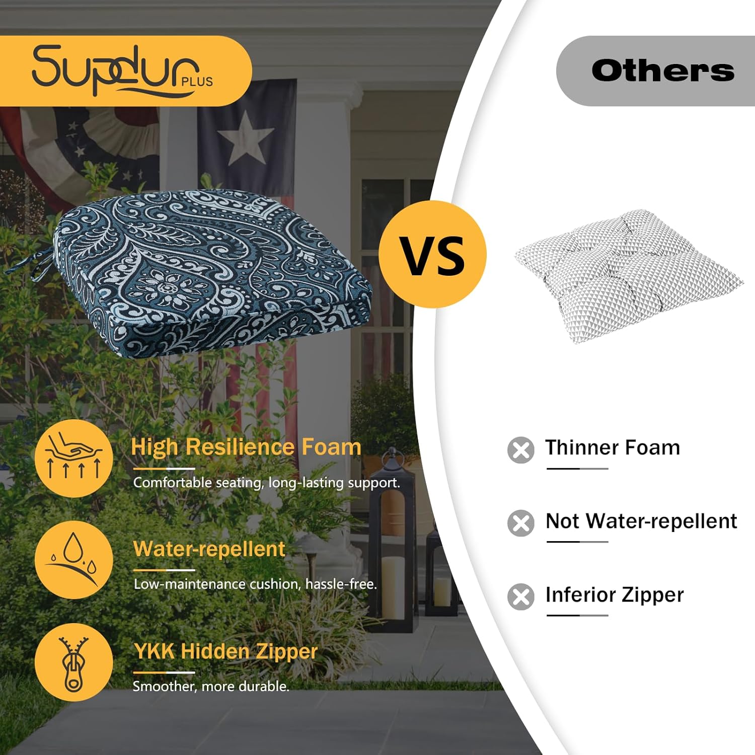 - Non-slip Ties & Piped edge: There are 2 straps on each side of the outdoor furniture cushions to keep stable and feature piped edges for a polished look and superior durability.