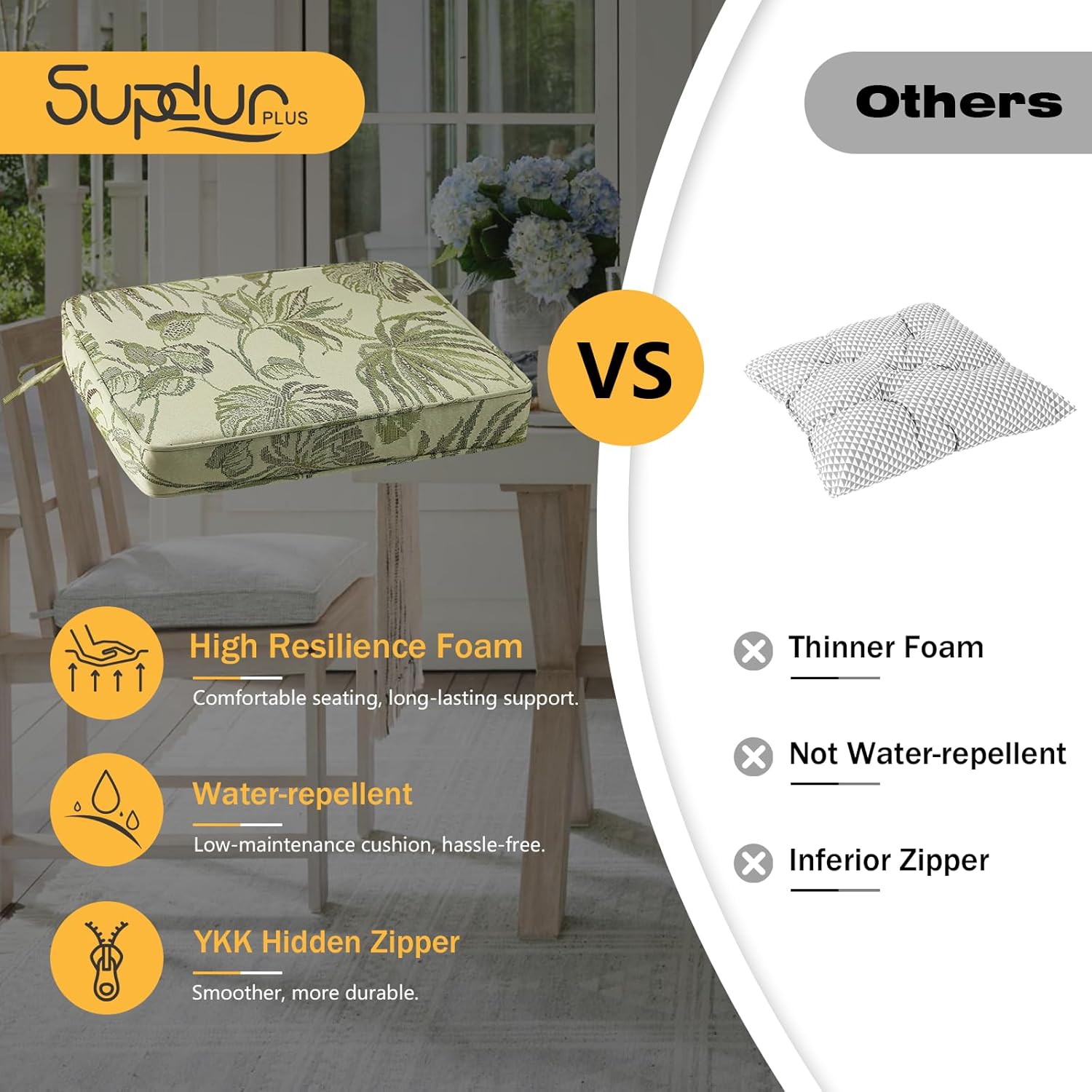 Outdoor Square Corner Seat Cushion, 18.5"x16"x3", Set of 4, Non Slip Seat Cushion Pads with Removable Cover for Patio Furniture, Garden Yard Lawn, Dark Green Vine