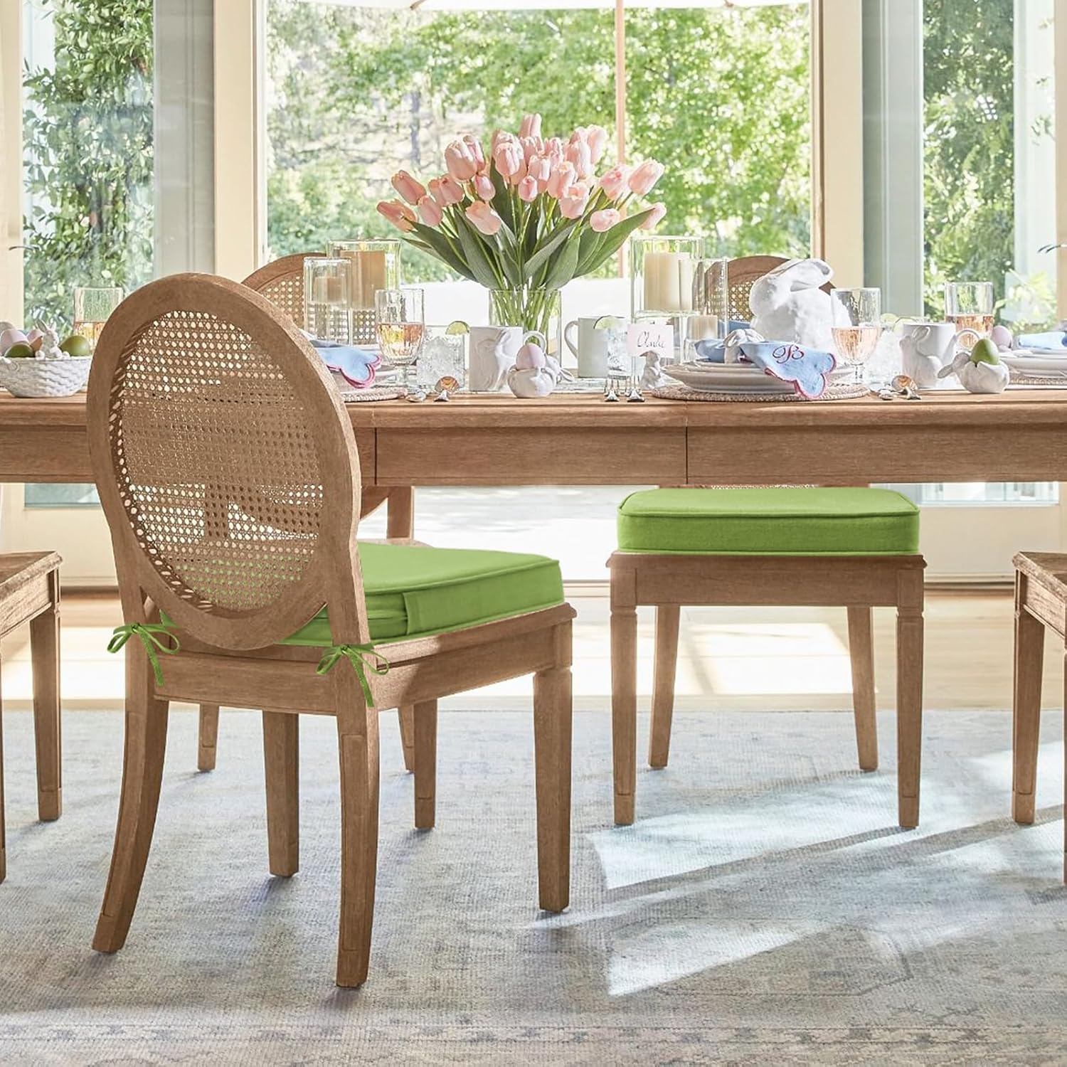Outdoor Sunbrella Round Corner Seat Cushion, 17"x16"x2", Set of 4, Non Slip Seat Cushion Pads with Removable Cover for Patio Furniture, Garden Yard Lawn, Canvas Ginkgo