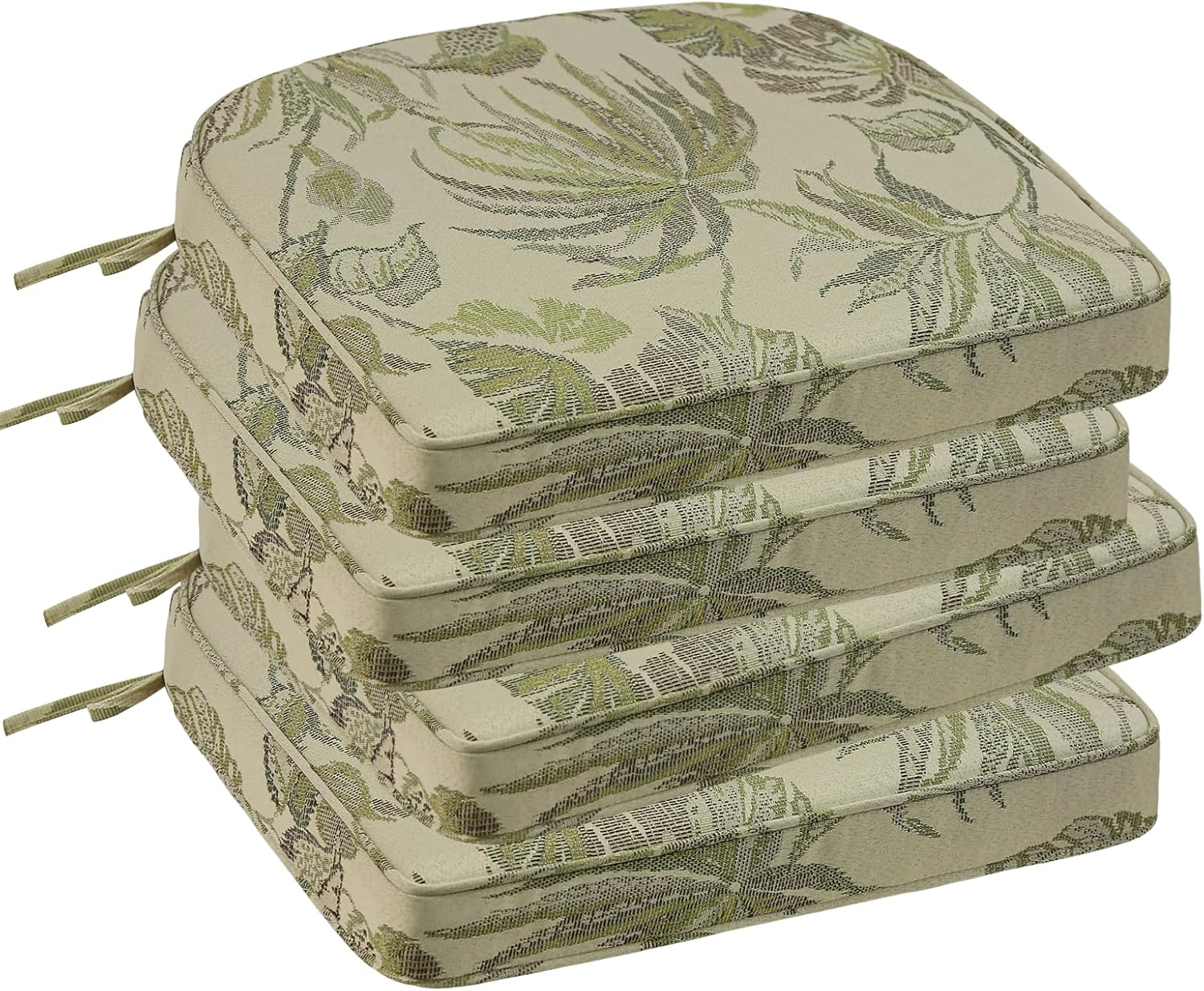 Outdoor Round Corner Seat Cushion, 17"x16"x2", Set of 4, Non Slip Seat Cushion Pads with Removable Cover for Patio Furniture, Garden Yard Lawn, Dark Green Vine