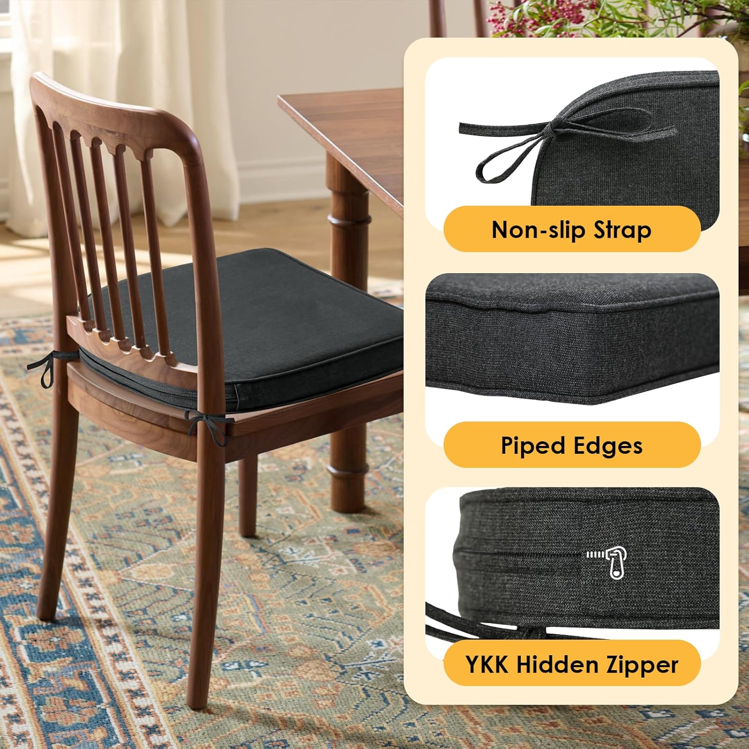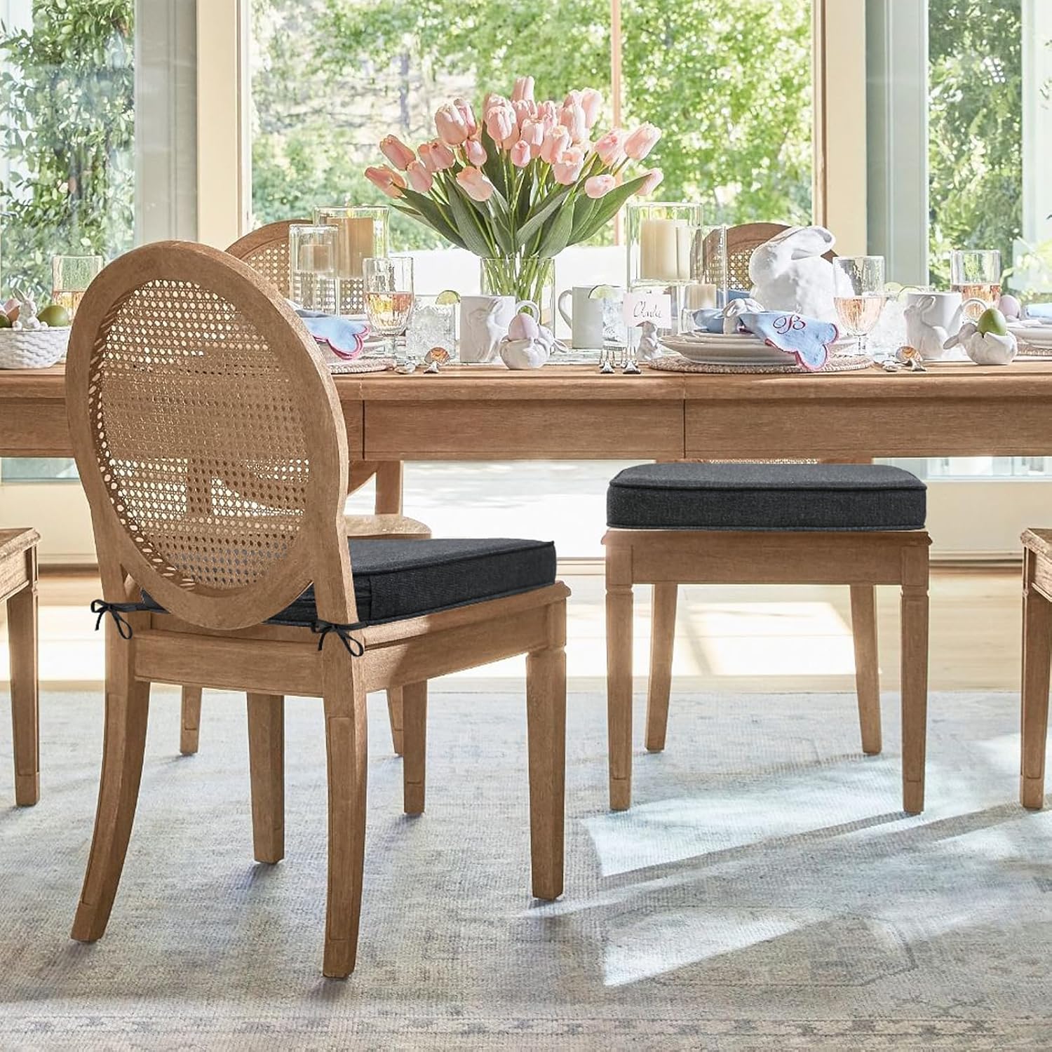 Outdoor Sunbrella Round Corner Seat Cushion, 17"x16"x2", Set of 4, Non Slip Seat Cushion Pads with Removable Cover for Patio Furniture, Garden Yard Lawn, Spectrum Carbon