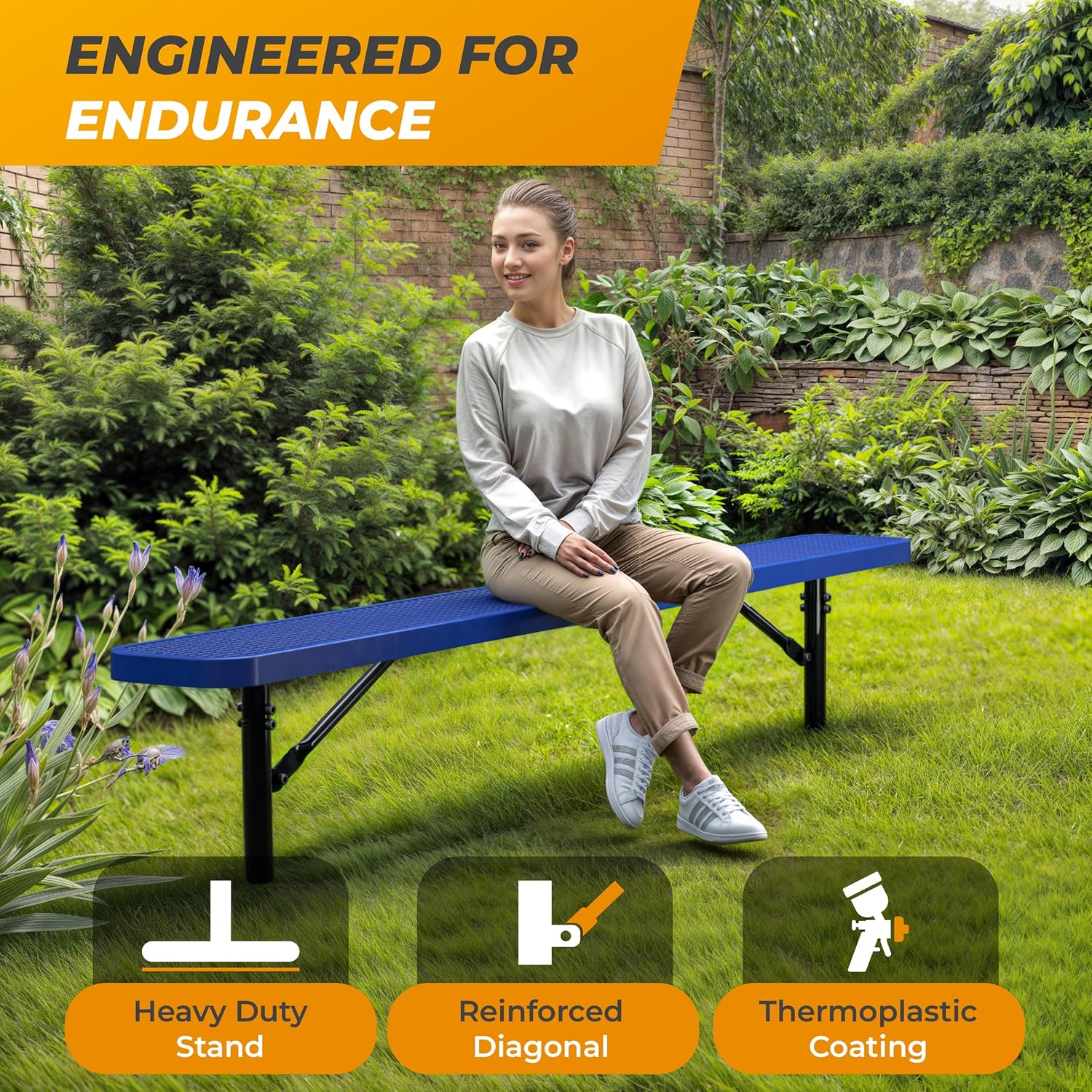 Heavy-Duty Outdoor Metal Bench, Thermoplastic-Coated, Inground, Weatherproof, Commercial-Grade for Parks, Gardens, Patios, Stores & More (8 Ft - Inground, Blue)