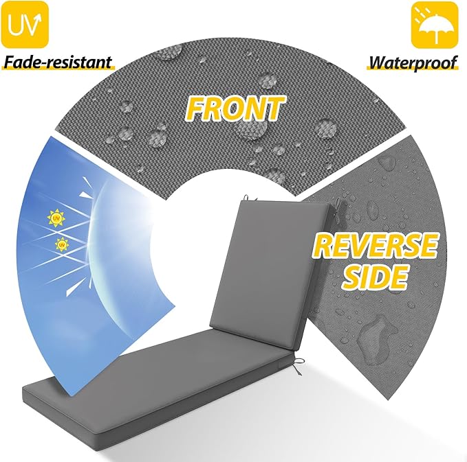 - Wide Use & Tips: These lounge chair cushions add cozy comfort to chaise lounges across pools, patios, balconies, decks, backyards, and gazebos, making your outdoor space more inviting and relaxing