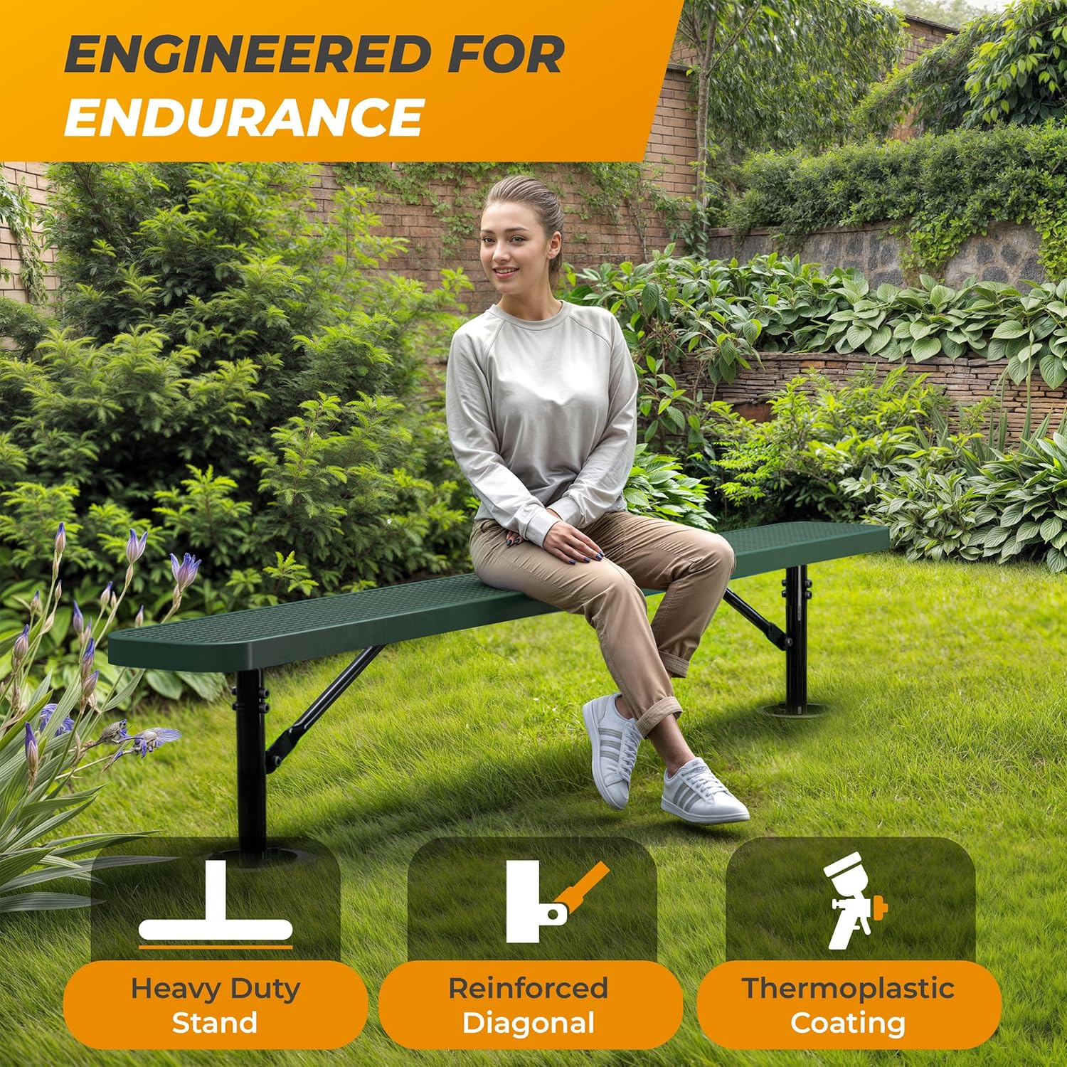Heavy-Duty Outdoor Metal Bench, Thermoplastic-Coated, Surface, Weatherproof, Commercial-Grade for Parks, Gardens, Patios, Stores & More (8 Ft - Surface, Green)