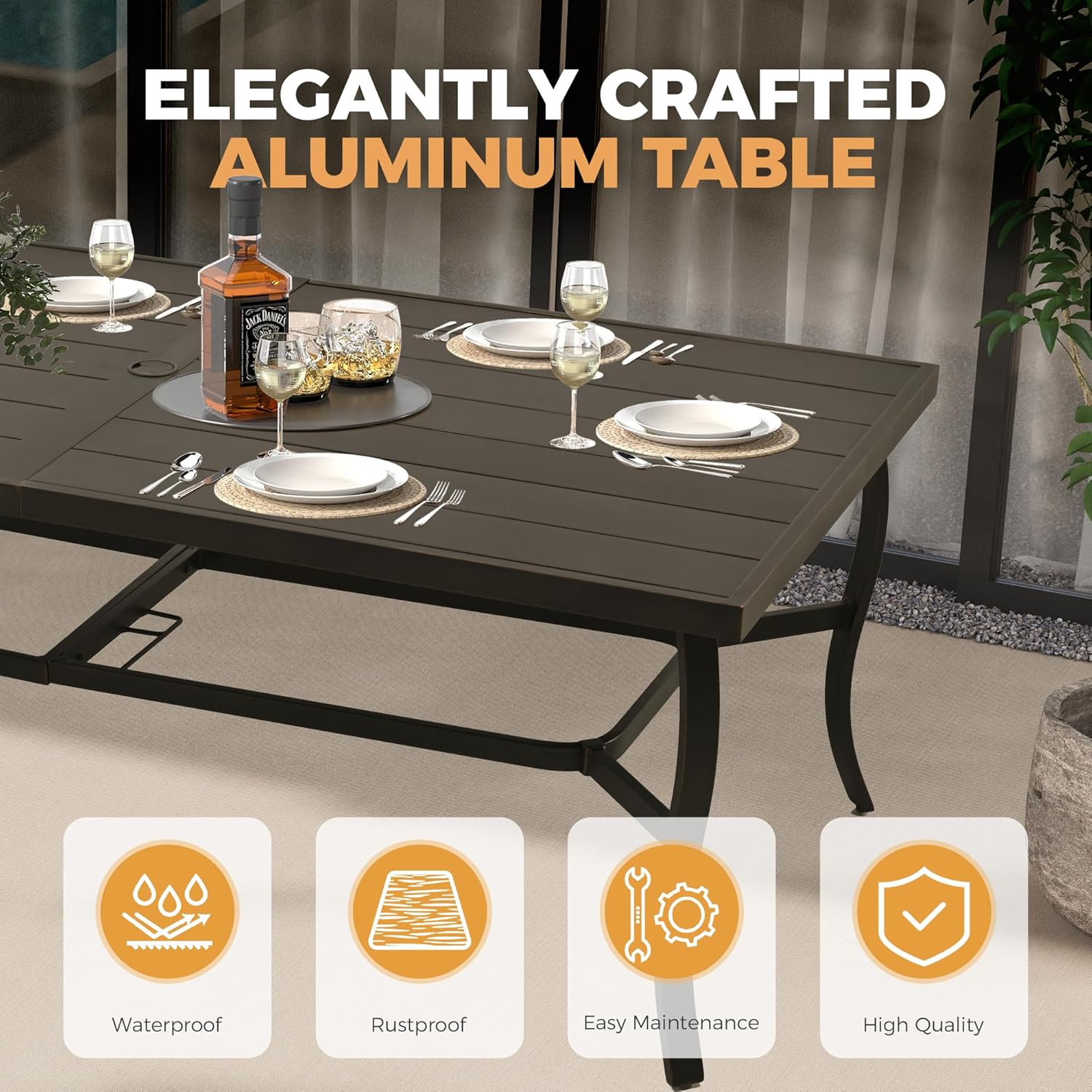 HAPPATIO Outdoor Dining Table for 8, Aluminum Rectangle Outdoor Dining Table with Umbrella Hole, All-Weather Aluminum Patio Dining Table for Garden Yard Poolside, Only Table, Black