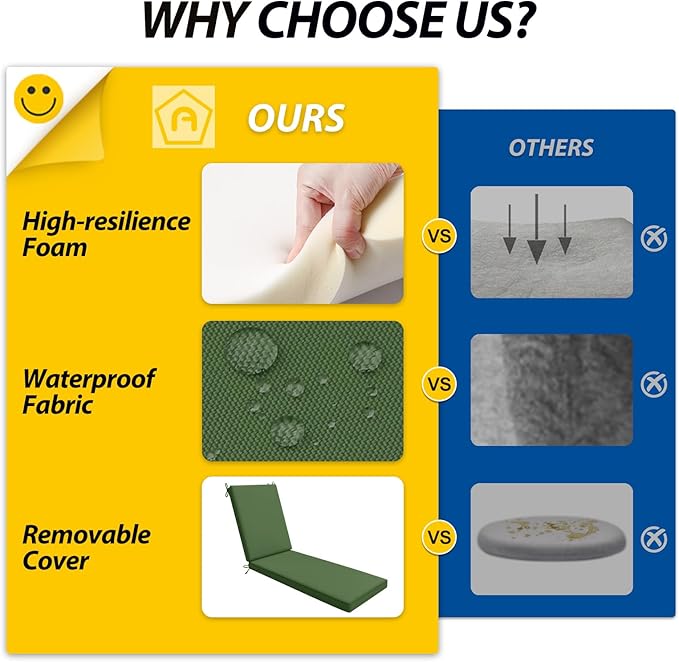 - Wide Use & Tips: These lounge chair cushions add cozy comfort to chaise lounges across pools, patios, balconies, decks, backyards, and gazebos, making your outdoor space more inviting and relaxing