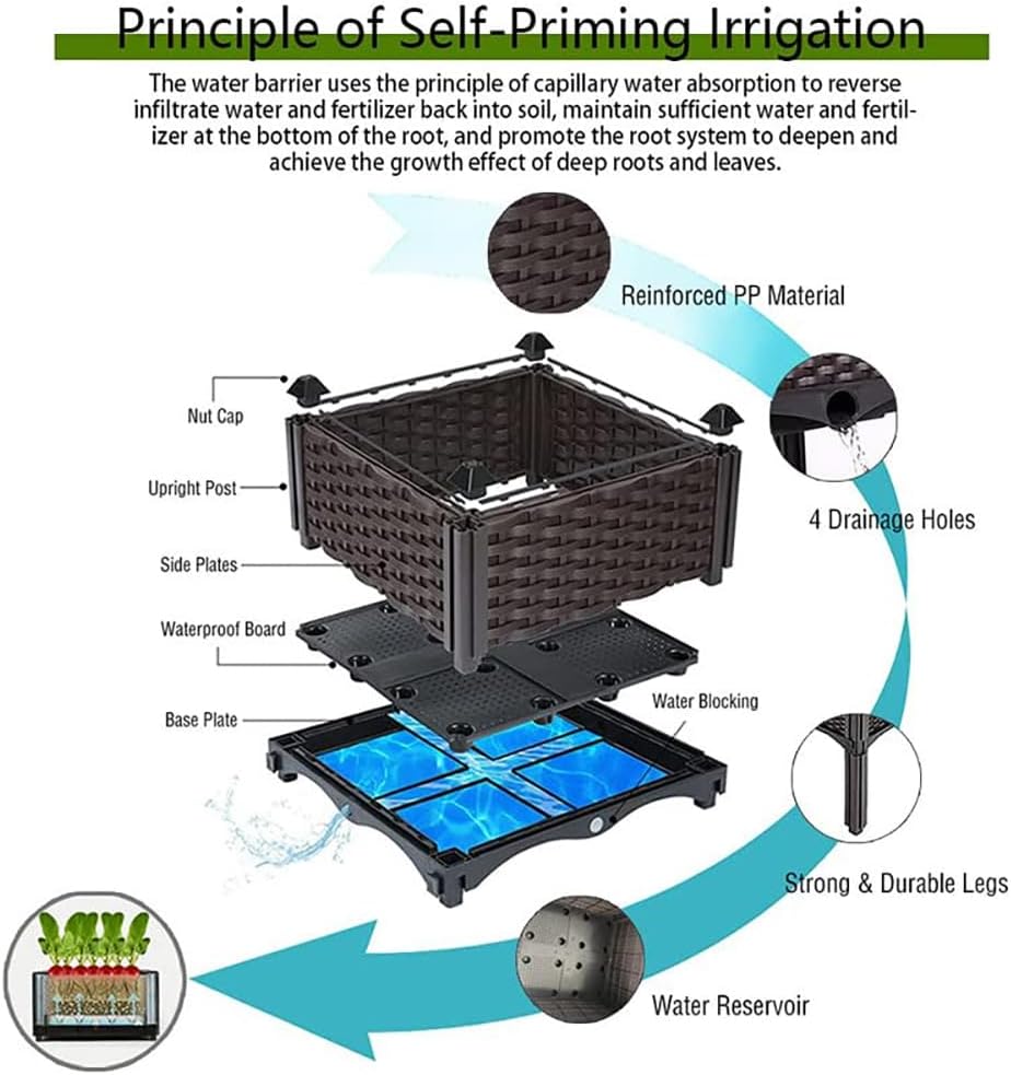 - 🌿【Rattan Pattern Design】Our planter raised bed featuring vintage rattan design, enhancing the beauty of your garden, courtyard, balcony, or backyard, perfect for growing vegetables, mint, herbs, tomatoes, flowers and a variety of plants.
