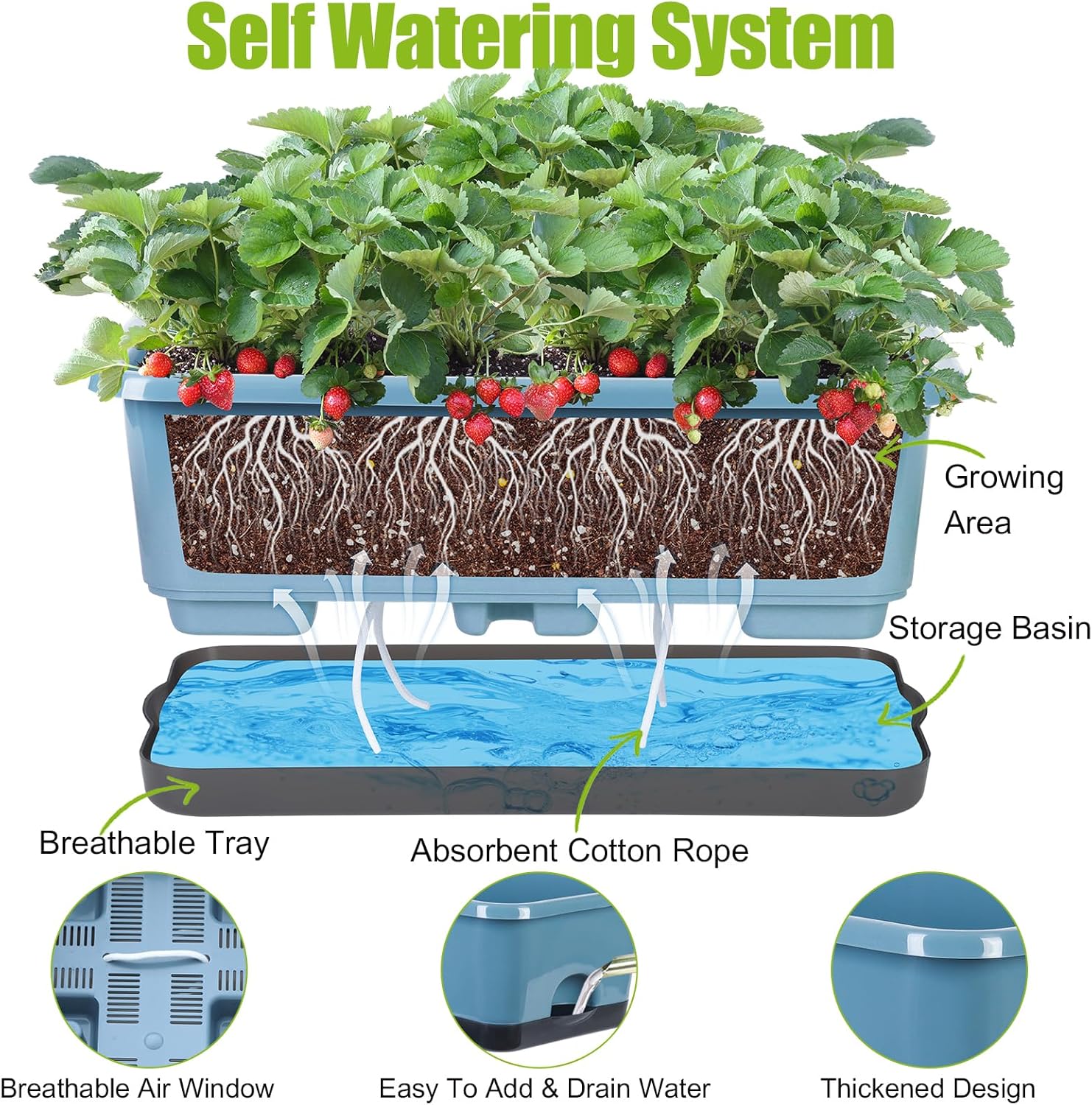 - 【Self Watering Plant Pots】Our Plant Pots are set of 6 pieces, and the size of the pot is about L17 x W7 x H6 inches, it is large enough to support any projects and ideas. Please note that plants in the images are not included! Perfect for growing all kinds of plants, like herbs, flowers, foliage, grass, cactus, succulents, ferns, arborvitae and more.
