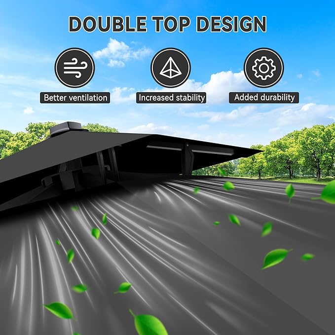 - Double Top Design: 2-Tier top can promote the air circulation inside the pool umbrella and add stability; Made of upgraded 250/gsm yarn-dyed fabric with PU coating, the outdoor umbrella canopy is water resistant, fade resistant and UV resistant