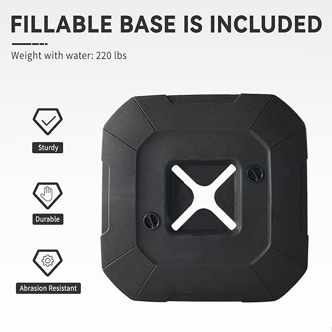- Patio Umbrella with Base Included: The outdoor cantilever umbrella includes a fillable umbrella base, The base needs to be filled with 90% sand and 10% water, weighs up to 220 lbs with water and sand after fully filled; The base will be delivered separately, so you won't receive both the umbrella and the base at the same time