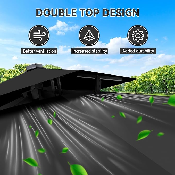 - Double Top Design: 2-Tier top can promote the air circulation inside the pool umbrella and add stability; Made of upgraded 250/gsm yarn-dyed fabric with PU coating, the outdoor umbrella canopy is water resistant, fade resistant and UV resistant