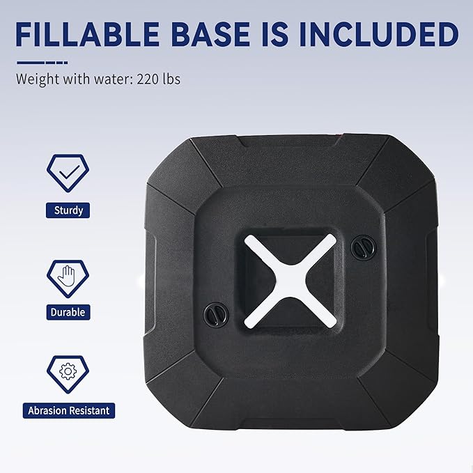 - Patio Umbrella with Base Included: The outdoor cantilever umbrella includes a fillable umbrella base, The base needs to be filled with 90% sand and 10% water, weighs up to 220 lbs with water and sand after fully filled; The base will be delivered separately, so you won't receive both the umbrella and the base at the same time