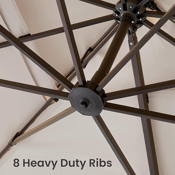 - Upgraded Fabric: Premium 250/gsm yarn-dyed polyester fabric with PU coating of the cantilever umbrella features water-repellent, fade-resistant and UV-resistant; Better protection for your family, ensuring comfortable outdoor life in summer