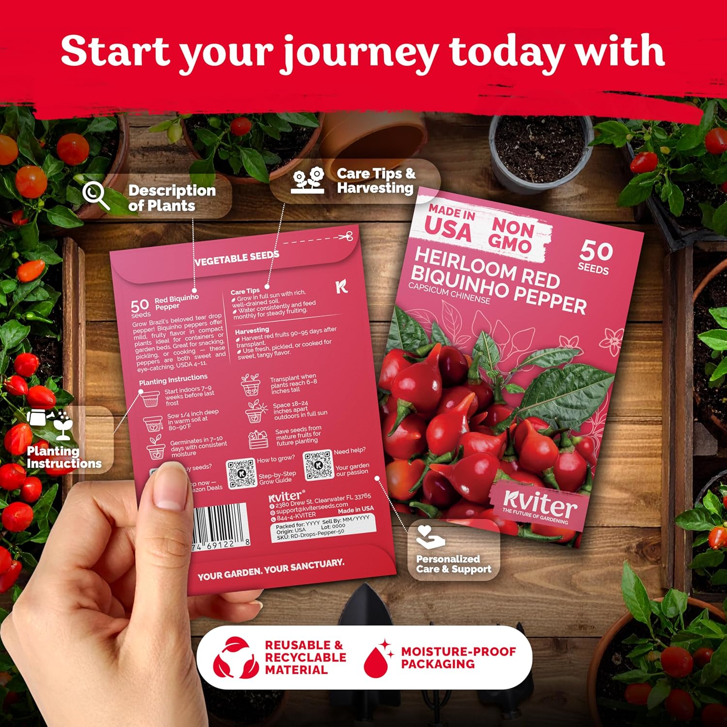 KVITER 50 Pimenta Biquinho, Sweety Drop Peppers Seeds (Capsicum Chinense) – Chupetinho, Pimenta de Bico, Little Red Tear Drop Peppers – Heirloom Red Pepper Vegetable Seeds for Outdoor & Indoor Garden