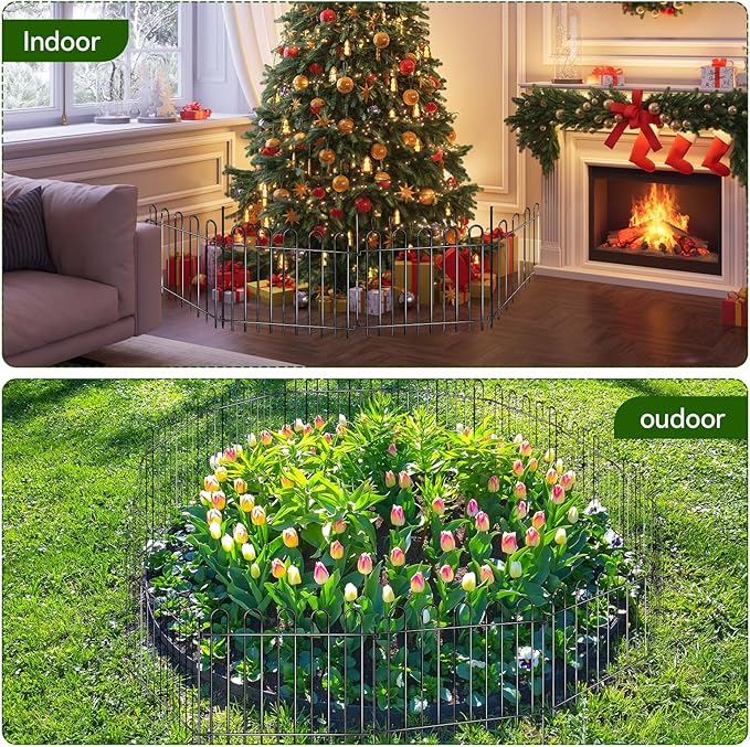 - Garden Fence AniMultipurpose Fence: This fencing for yard can be used as a small garden fence or animal barrier fence by inserting metal stakes into the ground to prevent small animals from escaping or entering and destroying your garden. The classic arched fence shape and simple modern garden decoration style are very suitable for plant flower beds, vegetable gardens, substations, ponds, lawns, adding a sense of fashion while avoiding accidents.mal Barrier