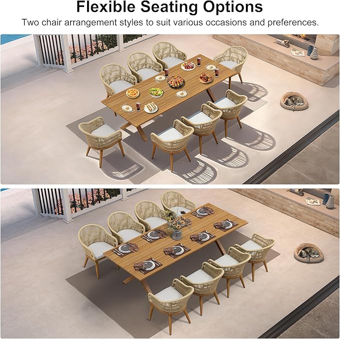 PURPLE LEAF 9 Piece Longer Patio Dining Set with Outdoor Aluminium Dining Table and Woven Chairs Modern Metal Furniture Cushions Sets for Garden Yard Indoor Decor Kitchen Teak