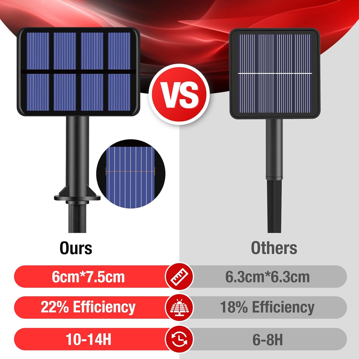 - Waterproof Design for All Weather: Light string and solar panel are IP65 waterproof to withstand any weather, either rain, sun, or snow. Safe for outdoor use, Don't worry about short circuits or bad weather damage (can't soak in water). Emit a red light after rain, romantic and beautify the yard