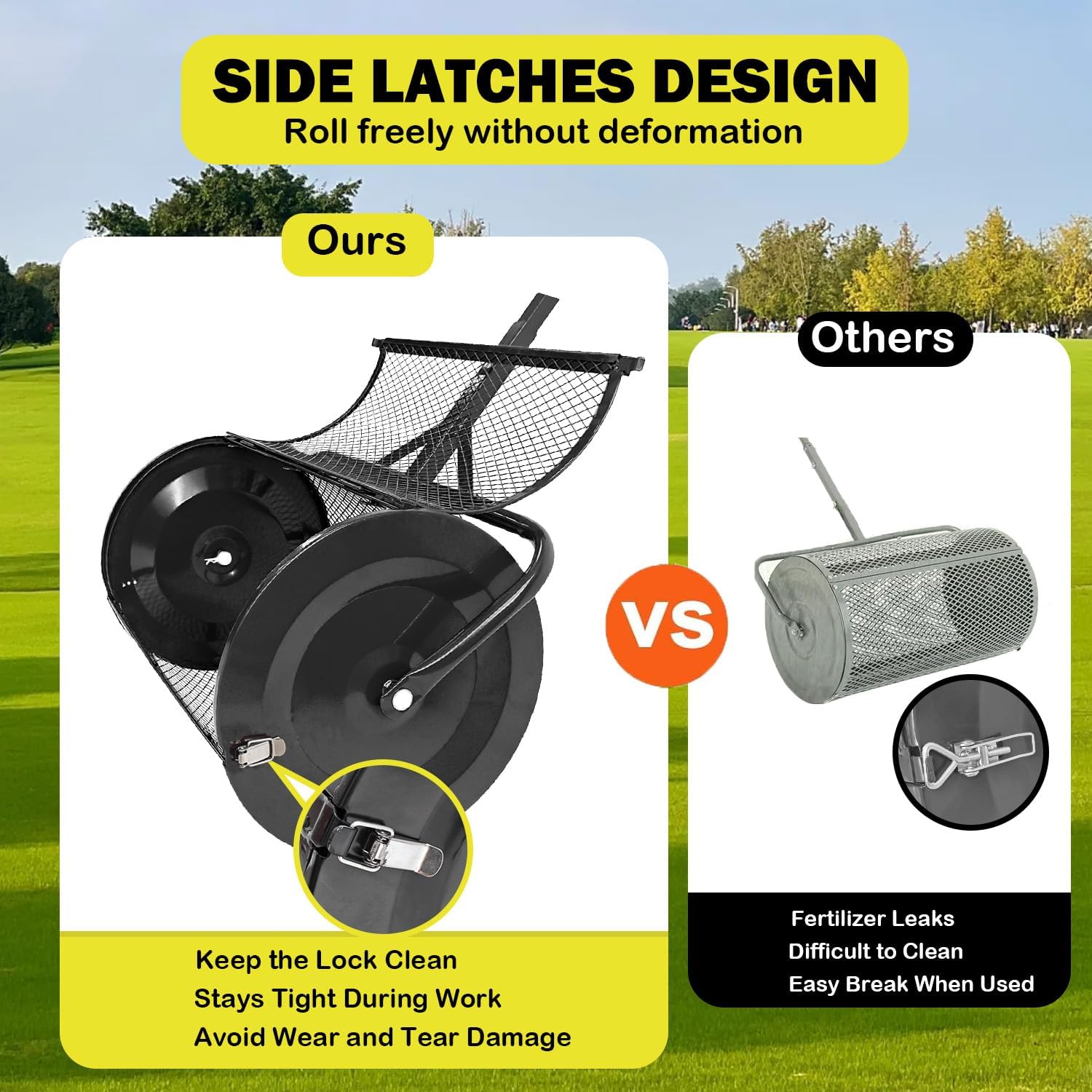 Compost Spreader, 24" Peat Moss Spreader, Roller Lawn Spreader with 3 Heights T Shaped Handle, Side Latches Powder Coated Steel Mesh Basket, Lawn & Garden Spreader for Spreading Manure Topsoil Black