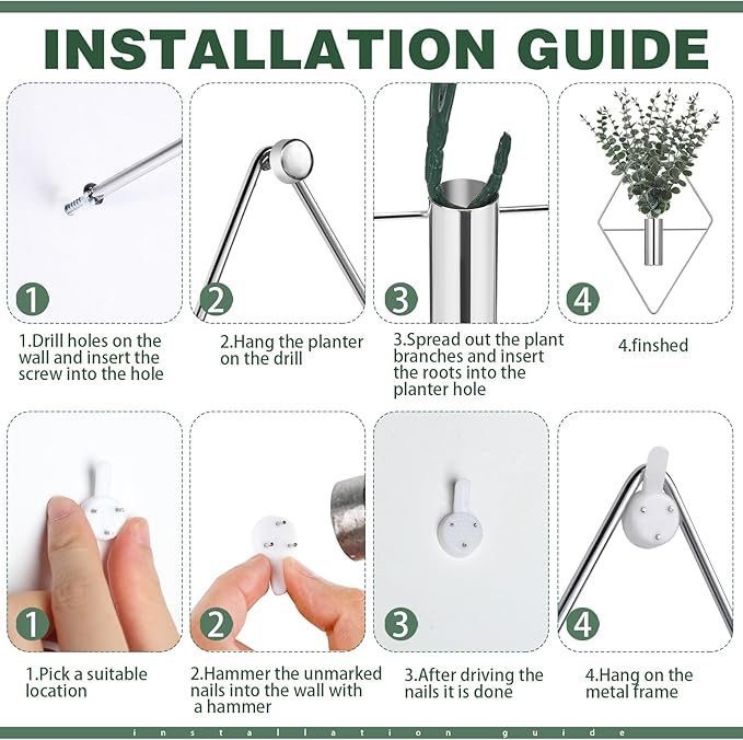 - Simple and Generous: the geometric wall hanging vase is designed in triangle and rhombus shape, coordinate with chrome sliver color, the collision of metal iron and flower, its simple design let it look elegant and generous, and is suitable for a variety of decoration styles, such as modern style, minimalist style, rustic style and more