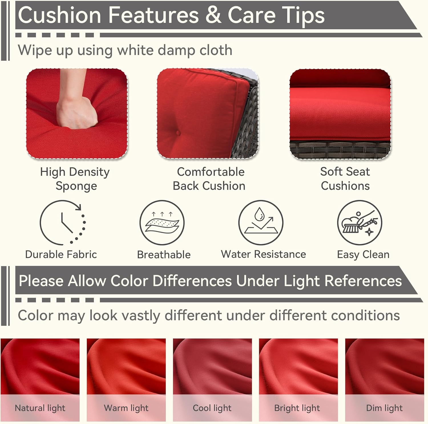 7 Pieces Outdoor Patio Conversation Set, Wicker Furniture Set Includes 3-Seat Sofa, Patio Rattan Dining Chair Set of 4, 2 Ottomans, for Porch, Yard, Mixed Brown Rattan, Red