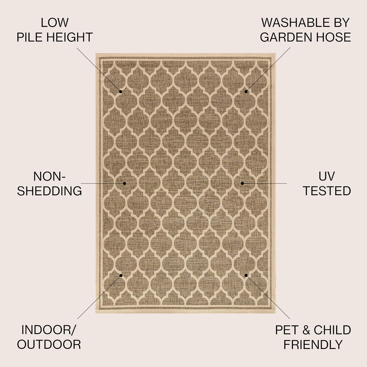 Eyely BMS109A-4R Santa Monica Trebol Moroccan Trellis Textured Weave, Pet Friendly, Non-Shedding, Stain Resistant, Easy-Cleaning, Brown/Beige, 4' Round, Indoor/Outdoor, Area Rug
