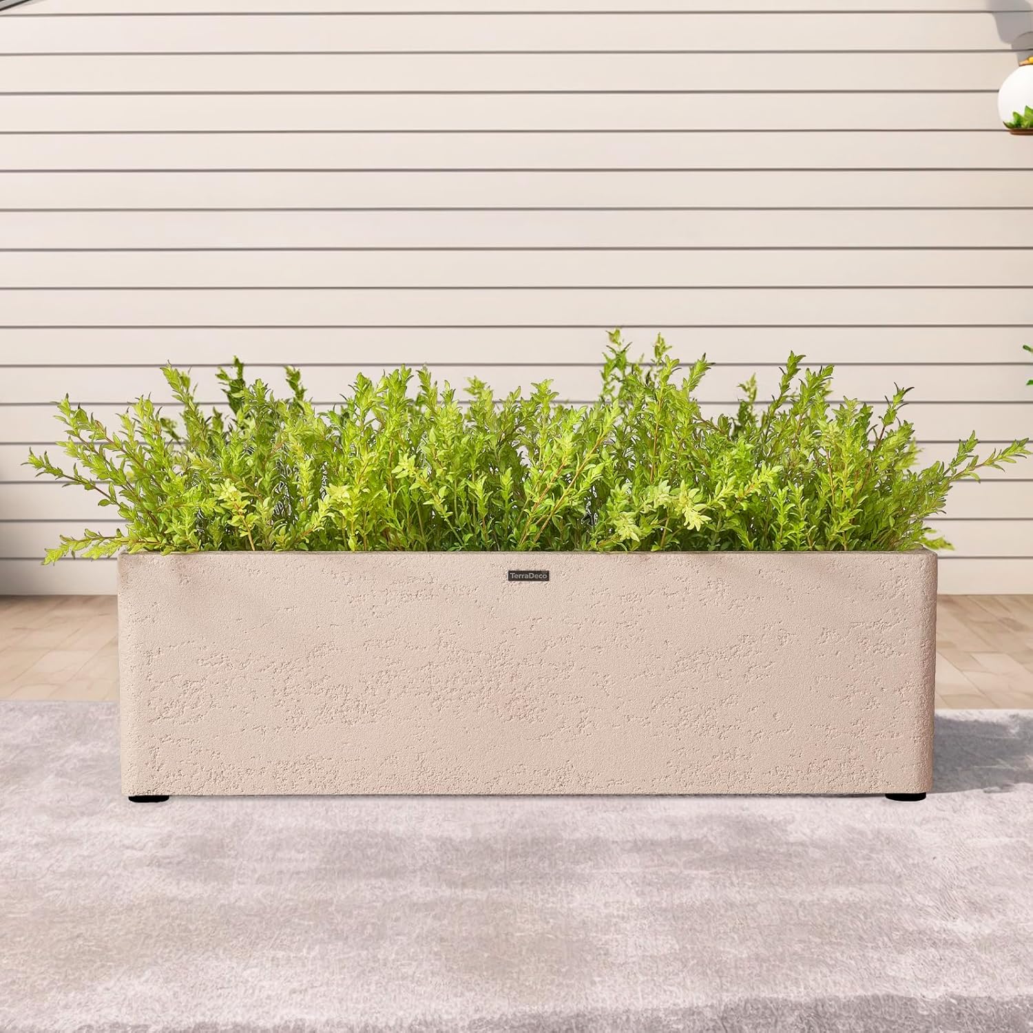 - Spacious Rectangular Design:Measuring 31 inches in length, the rectangular shape provides abundant space for a wide variety of plants, from petite herbs to sizable shrubs. Its sleek and modern design effortlessly blends into diverse outdoor decor styles, ideal for commercial landscapes, office entrances, or retail storefronts.